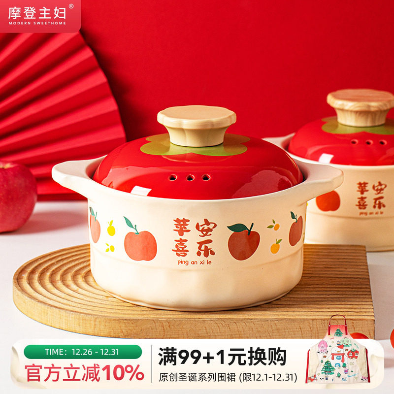 摩登主妇砂锅煲家用耐高温干烧不裂燃气灶专用沙锅陶瓷煲汤炖汤锅