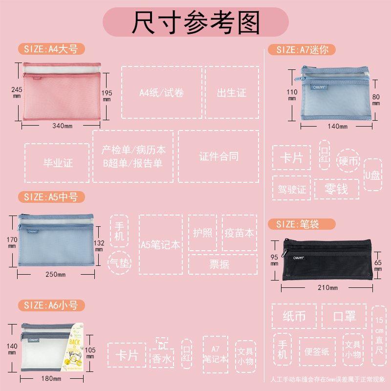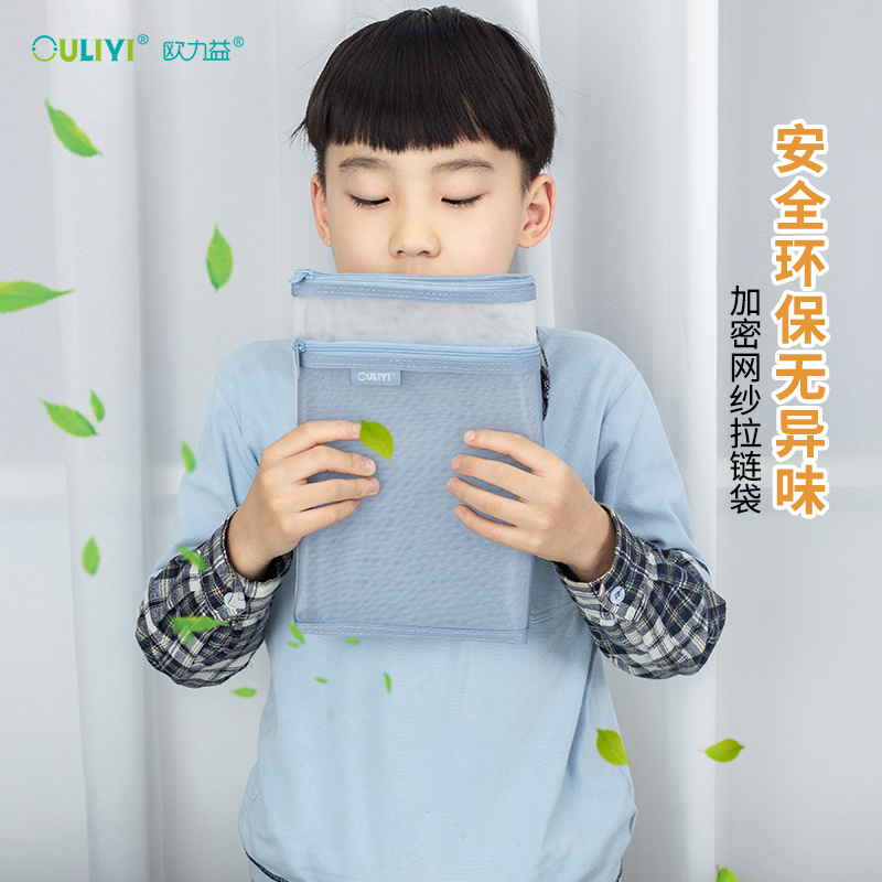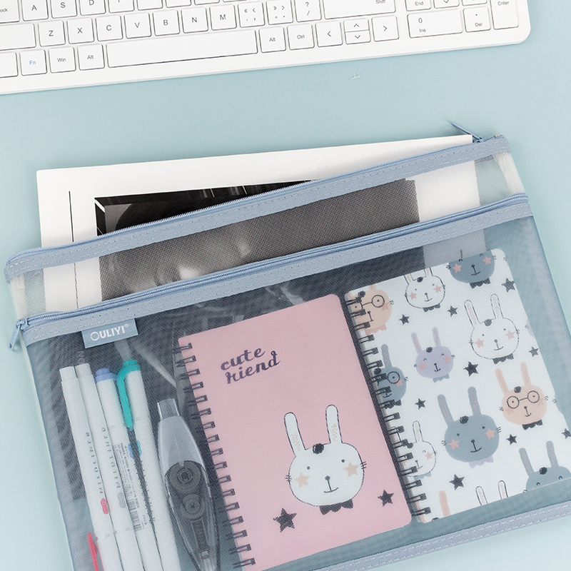 欧力益透明文件袋学生科目分类拉链袋a4双层网袋学生补习袋考试笔袋轻便办公资料袋课本试卷收纳证件票据投标
