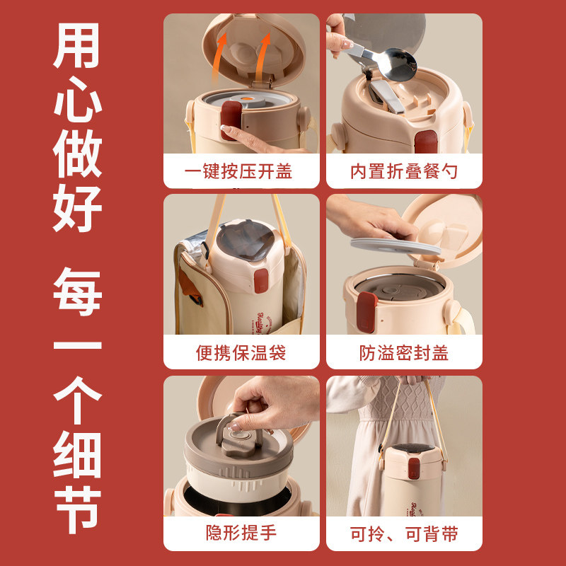 九阳保温饭盒上班族2025新款超长保温桶分格提桶不锈钢便当盒餐盒