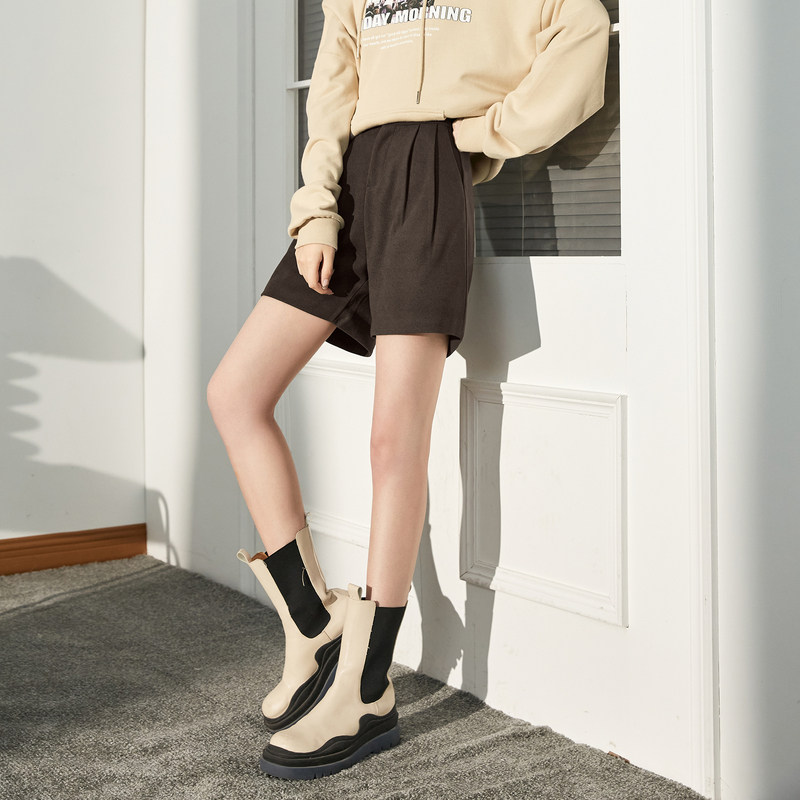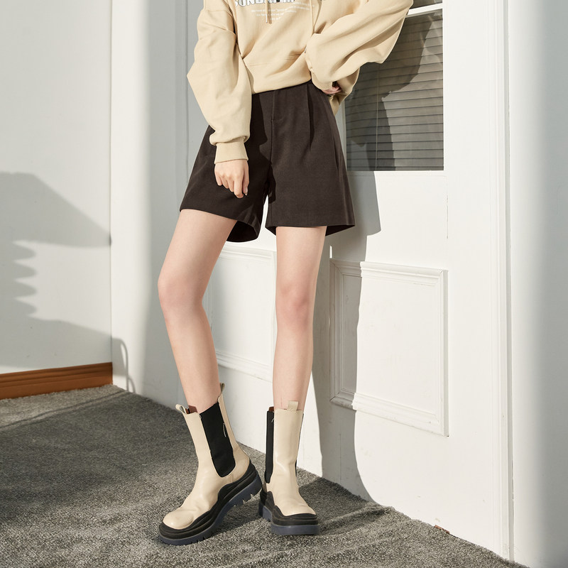 唐狮毛呢短裤加厚新款秋冬高腰a字宽松基础阔腿休闲裤子