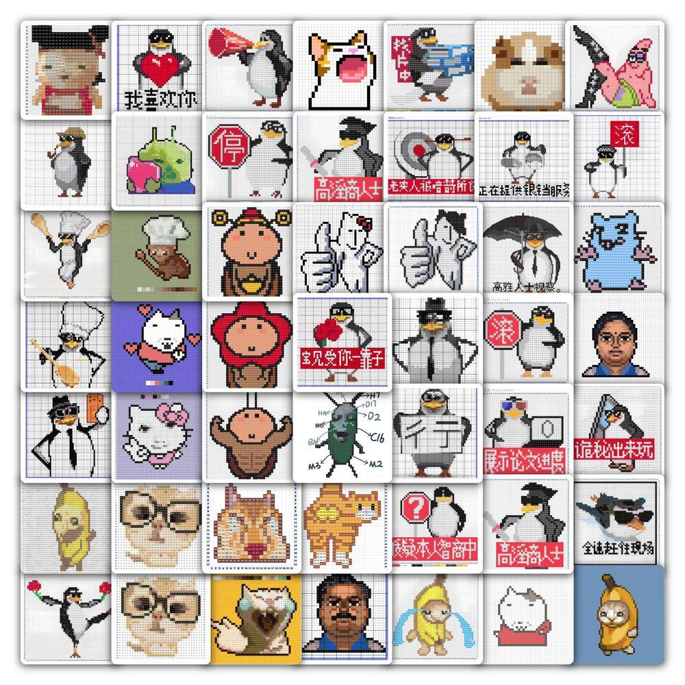 【大图释官方授权】118张热门拼豆人物儿童玩具桌面墙面素材贴纸diy自粘手机壳行李箱标签防水不干胶立体贴画