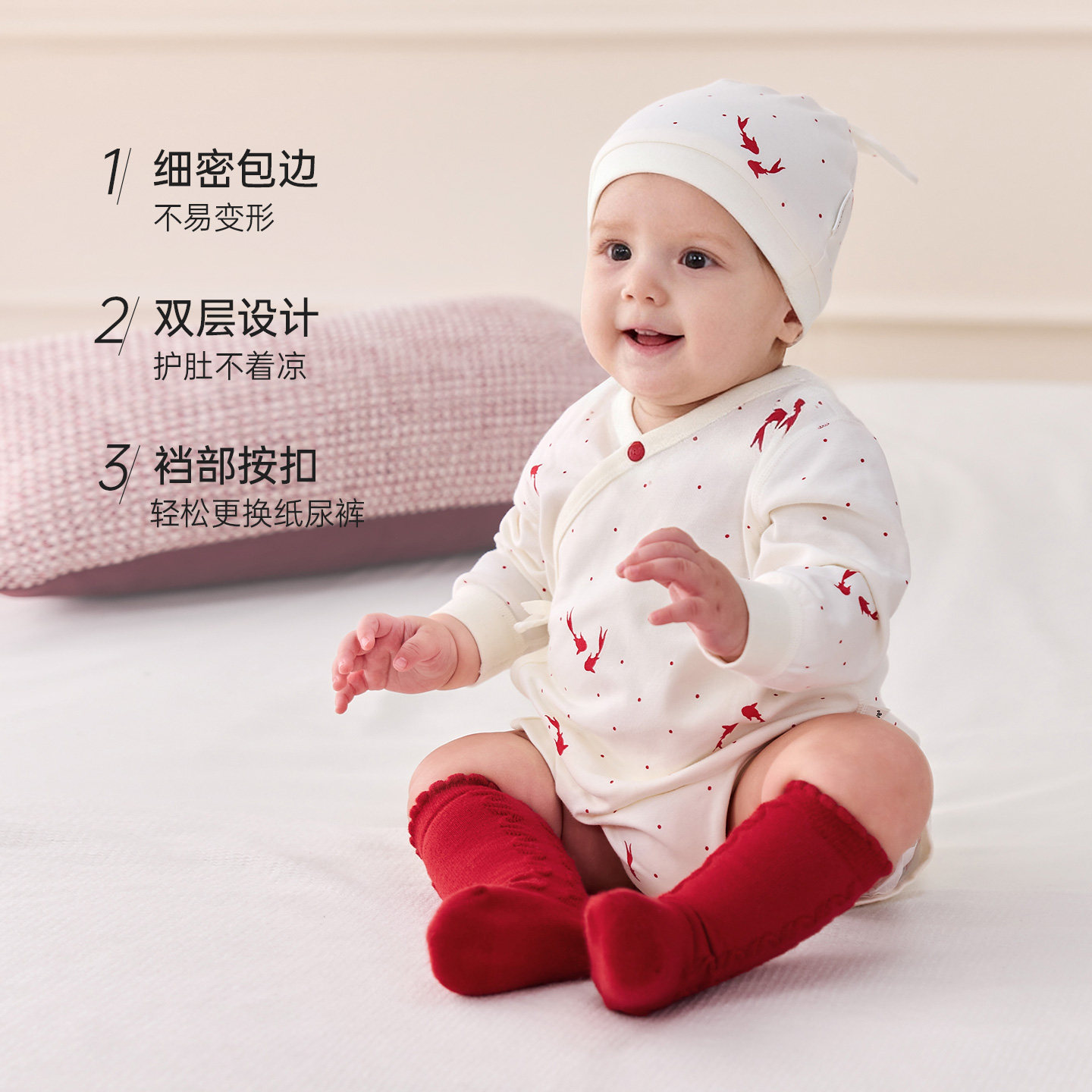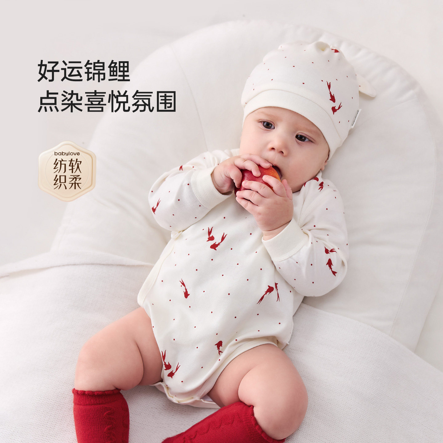babylove【安心柔】新生儿包屁衣春秋婴儿周岁纯棉衣服岁禧鳞光