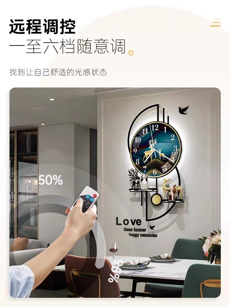 熊猫发光摇摆挂钟客厅装饰画时钟新简约现代餐厅沙发背景墙壁挂画