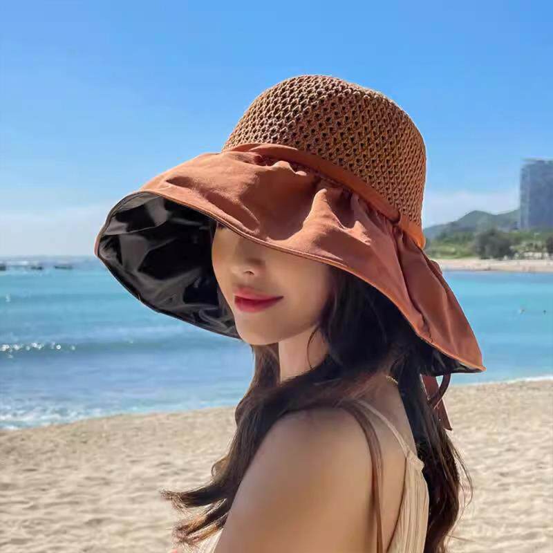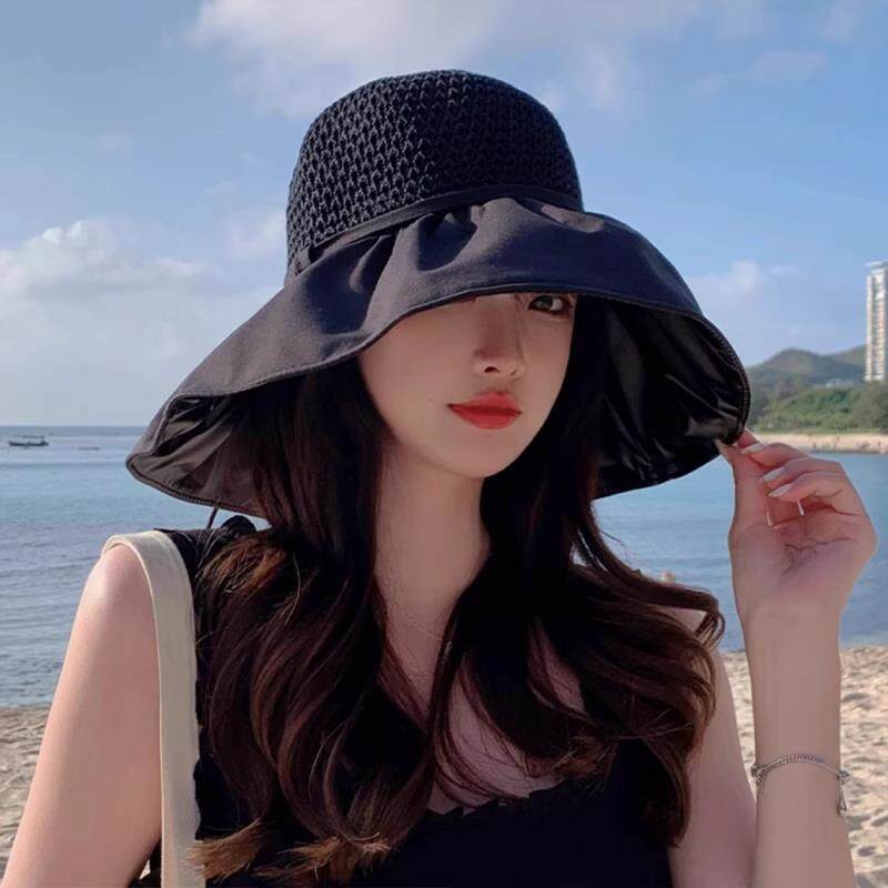 防晒帽女夏季防紫外线贝壳遮阳帽空顶太阳帽子大檐夏天儿童可折叠