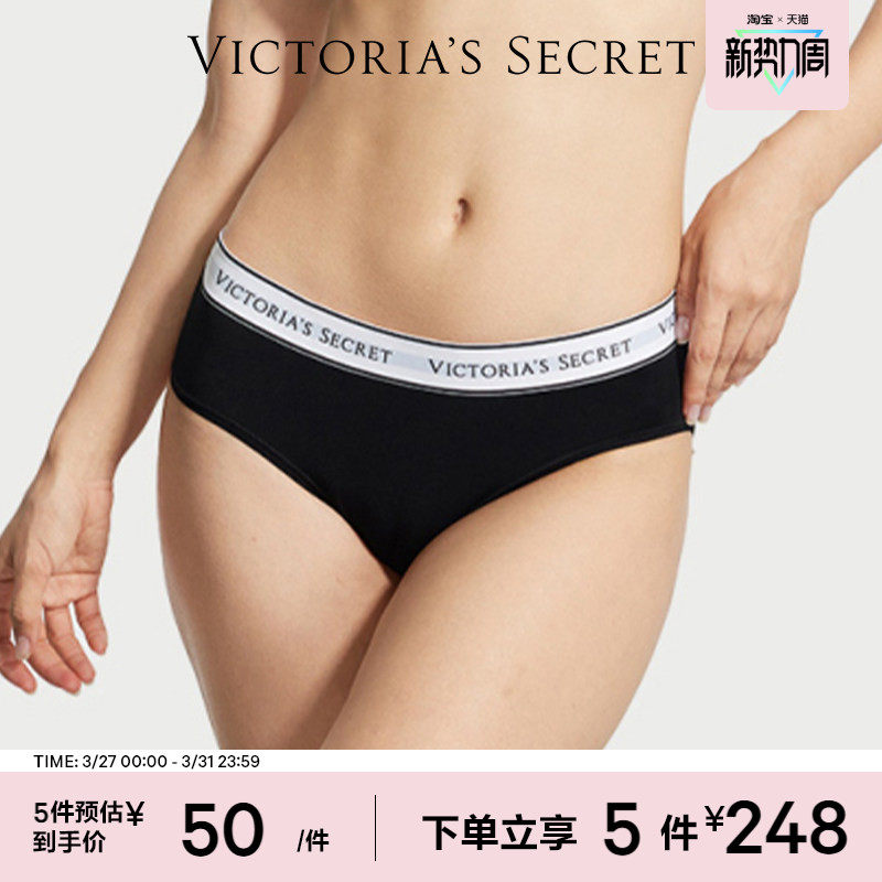 5件248|维密时尚舒适棉质内裤LOGO字母腰带中腰性感三角裤女春