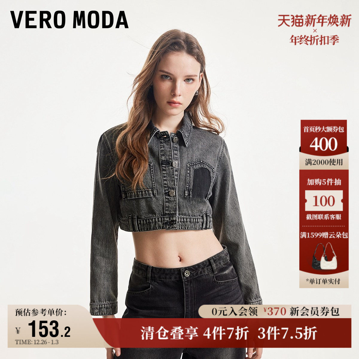 Vero Moda奥莱牛仔外套女秋冬新款复古街头做旧水洗短款上衣大衣