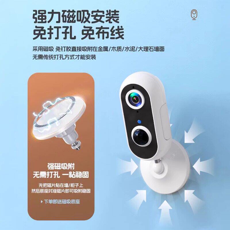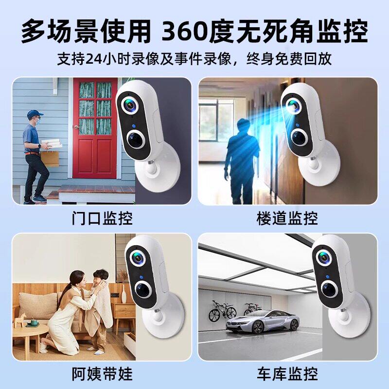 摄像头免插电无线监控家用手机远程室内外入户门口无需网络监控器