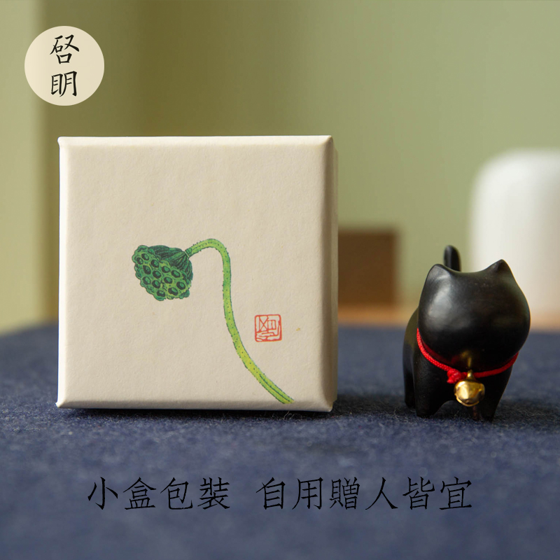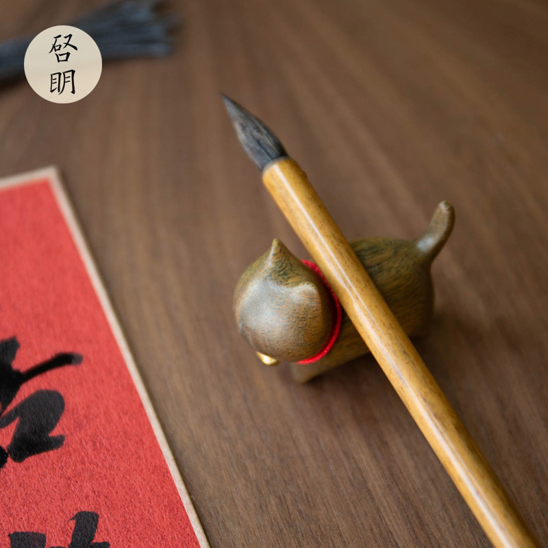启明文房小猫笔搁黑檀木绿檀实木雕刻可爱创意文房木质萌笔架笔托