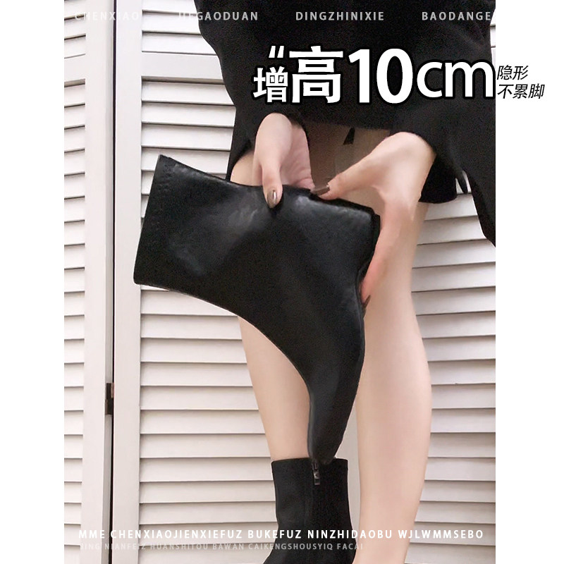 不累脚!内增高7.5CM短靴女2025冬侧拉链方头小个子瘦瘦时装靴