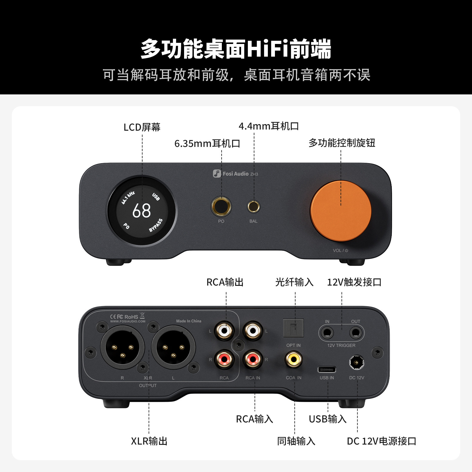 Fosi Audio弗西音频ZH3大功率HIFI发烧级dac解码器耳放前级一体机