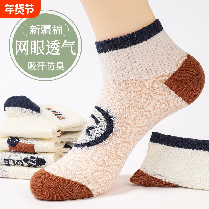 卡通袜子女春秋季纯涤棉短袜吸汗透气短筒袜夏季网眼透气薄款船袜
