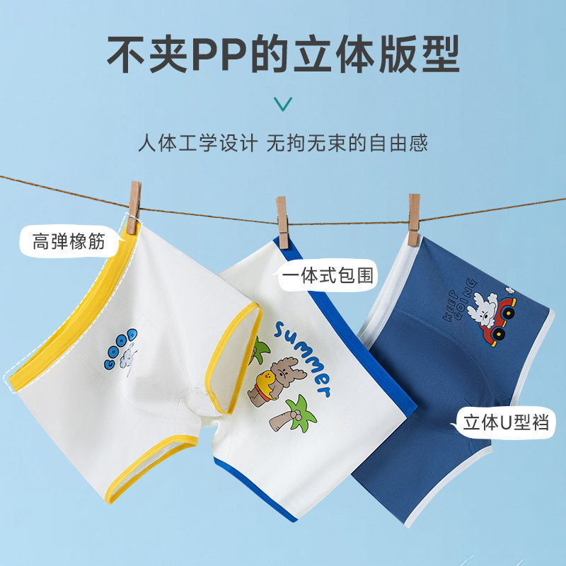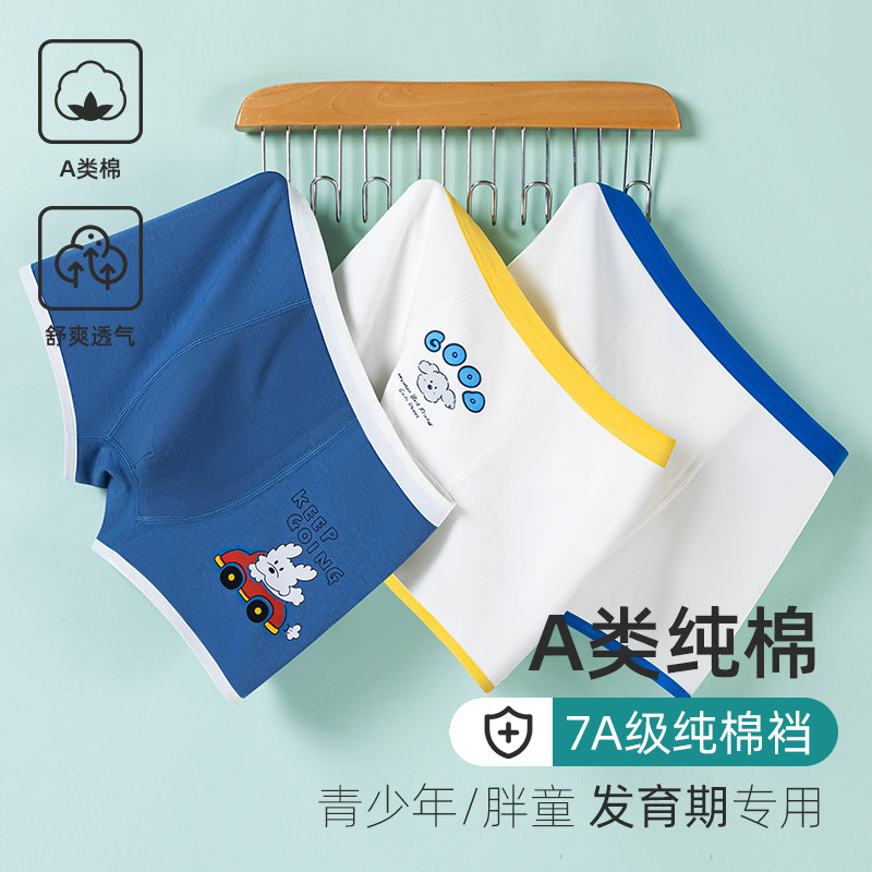 儿童内裤纯棉抗菌中大童宝宝全棉男童发育期平角四角短裤不夹屁屁