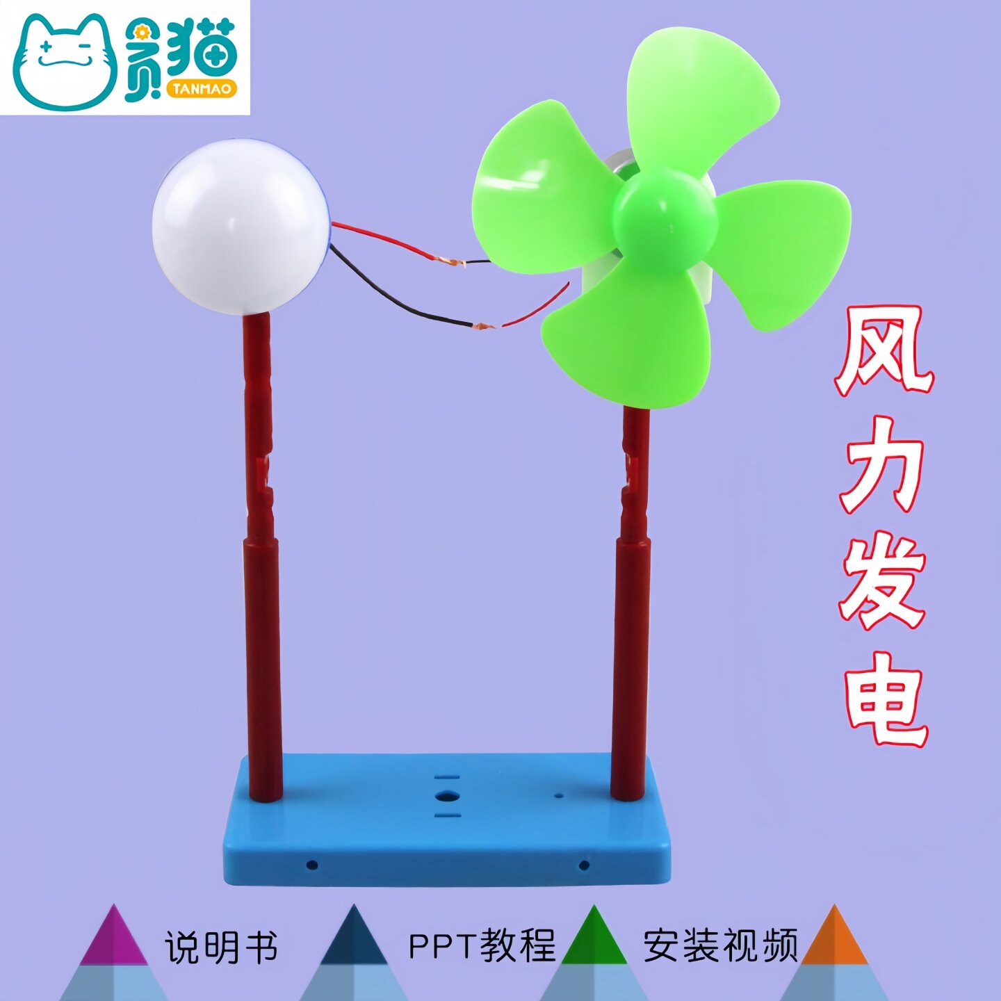 大灯泡风力发电模型科技小制作手工diy学生物理教具科学实验材料