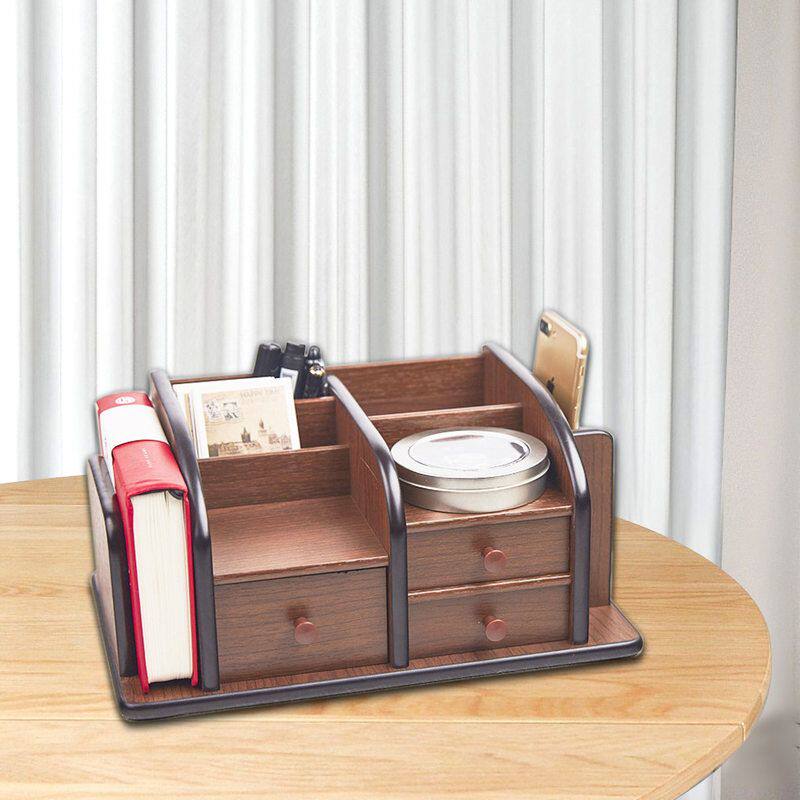 笔座书房收纳遥控木质笔筒座大号小家具收纳盒汇星1039整理桌面