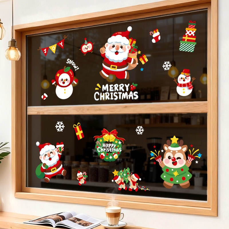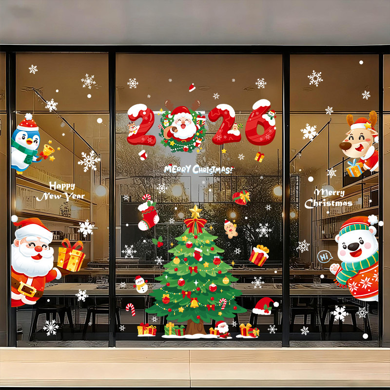 圣诞节静电橱窗贴2026氛围场景布置装饰品玻璃贴纸圣诞老人树窗花