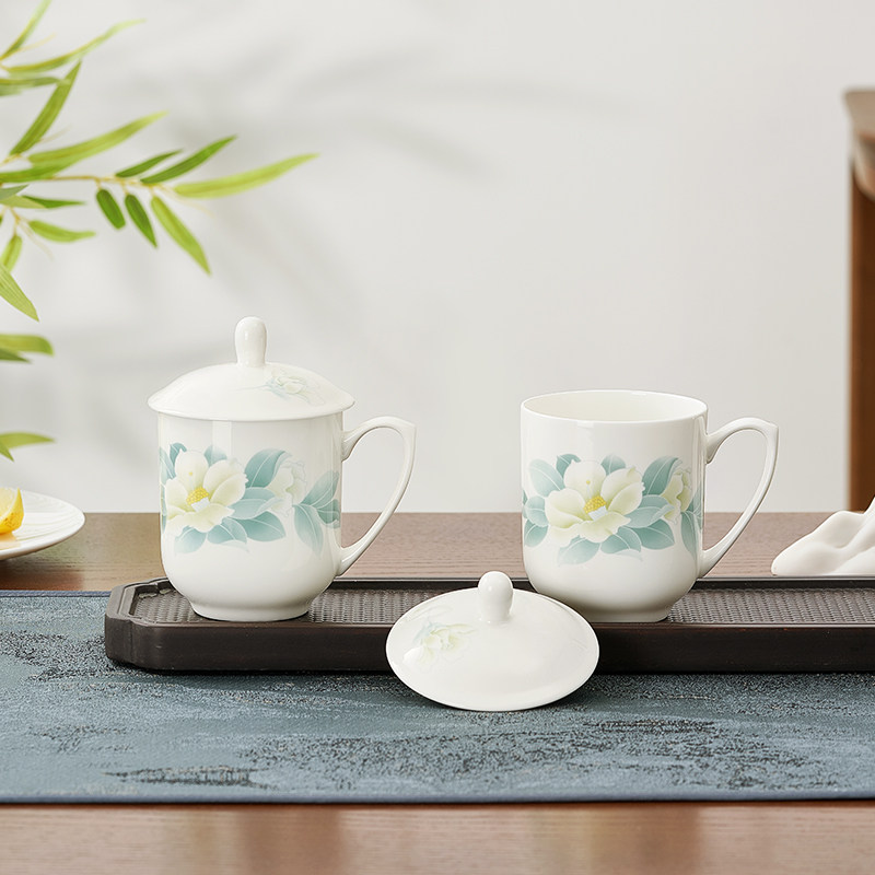 华光国瓷茶杯盖杯泡茶杯新中式会客茶杯碟陶瓷杯喝水杯子清秋雅韵