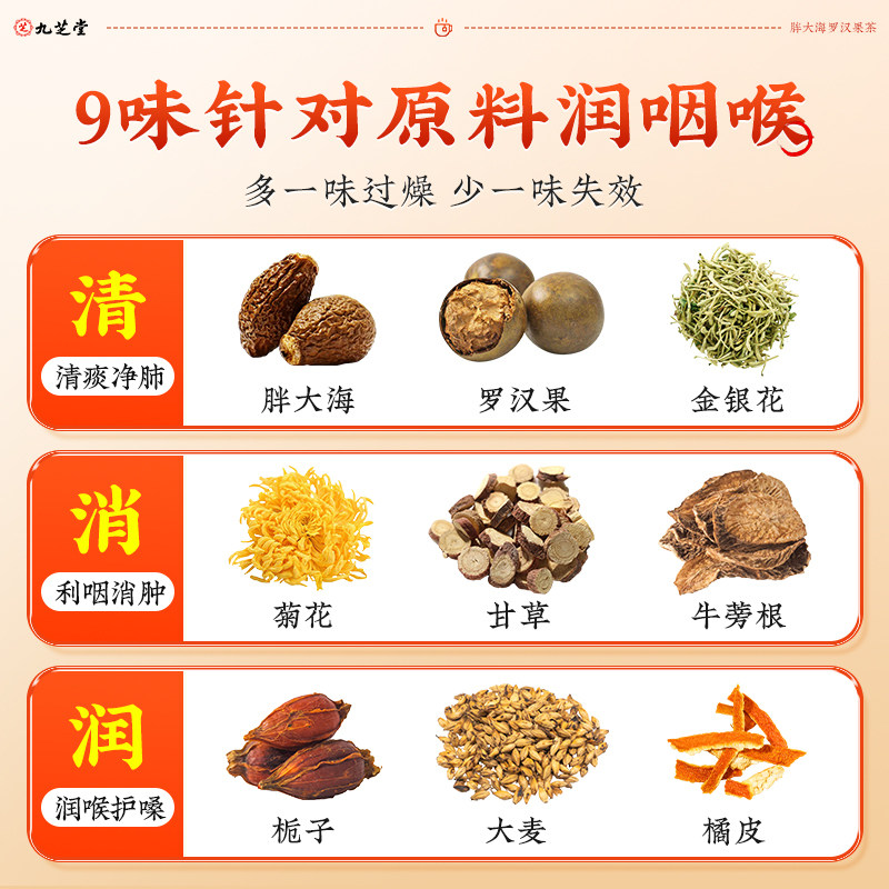 九芝堂胖大海罗汉果甘草菊花养生茶护嗓润喉咽正品官方旗舰店清肺