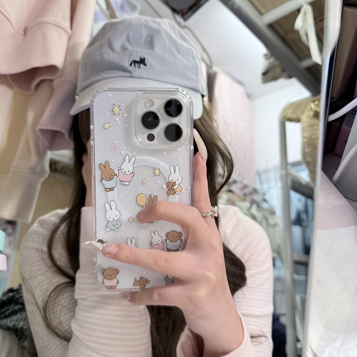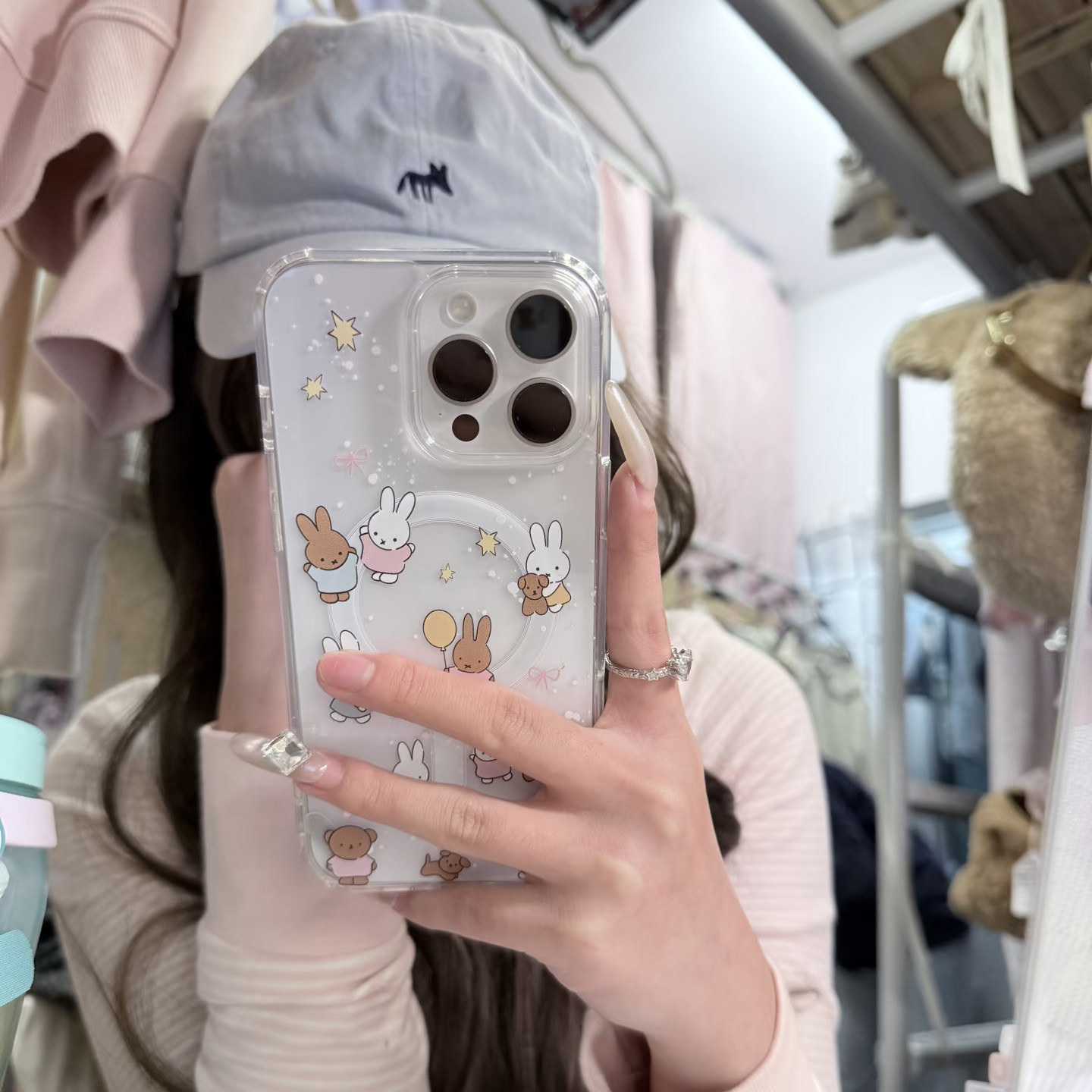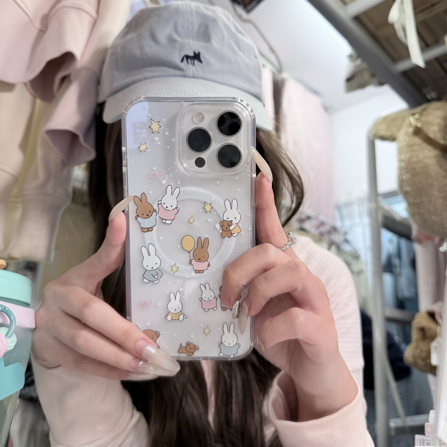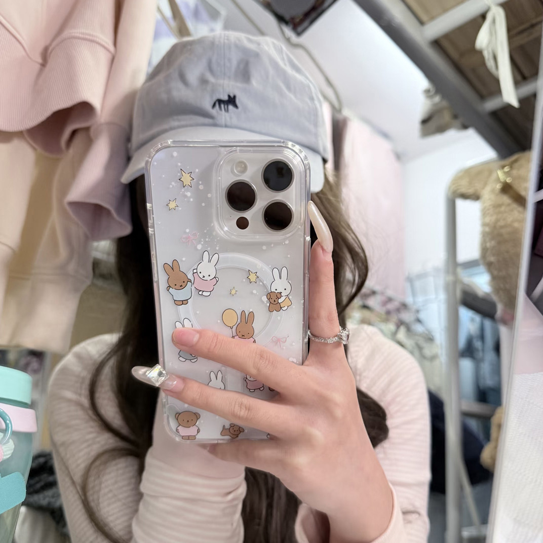 黑白米菲兔兔适用于苹果17Promax磁吸手机壳iphone16Pro男女14透明13Pro保护套12mini硅胶软7/8plus防摔17air