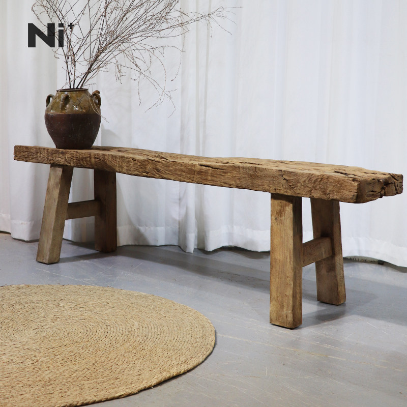 Ni尼家复古长条凳民宿酒店茶凳民宿床尾凳侘寂风实木换鞋凳子长椅