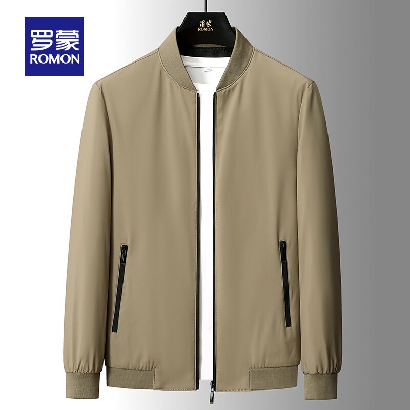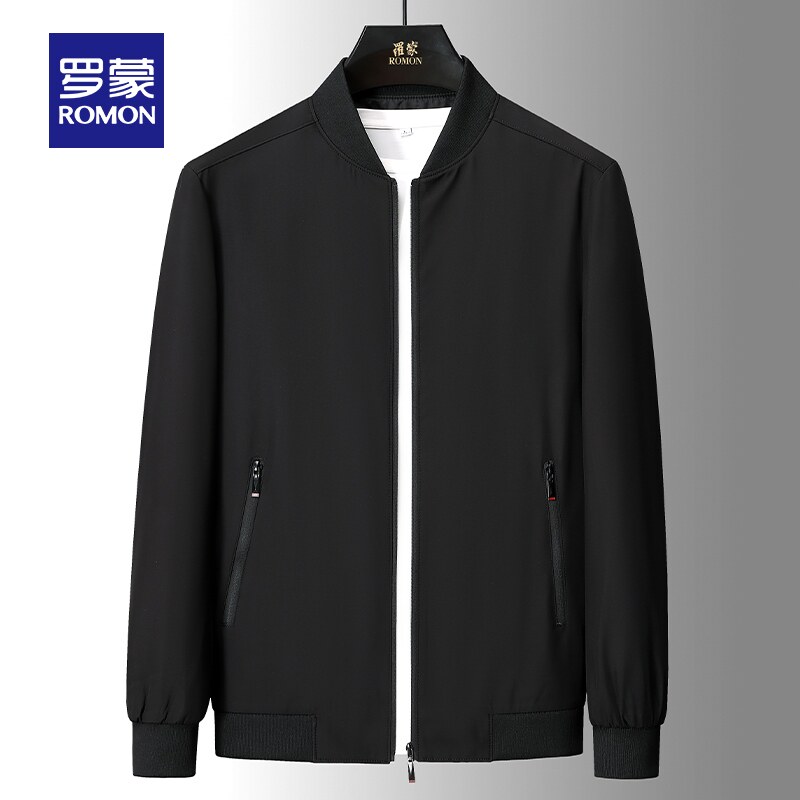 罗蒙男士商务休闲棒球领夹克衫2026春季新款中老年爸爸装修身外套