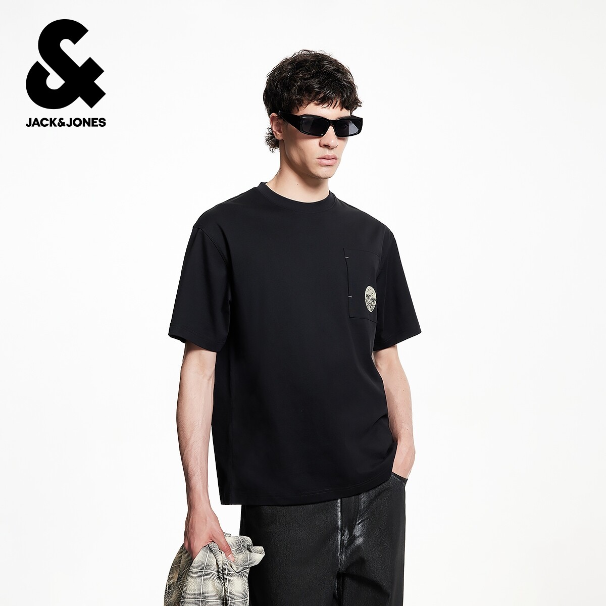 杰克琼斯男装秋季新款T恤纯棉舒适百搭简约日常宽松圆领短袖上衣