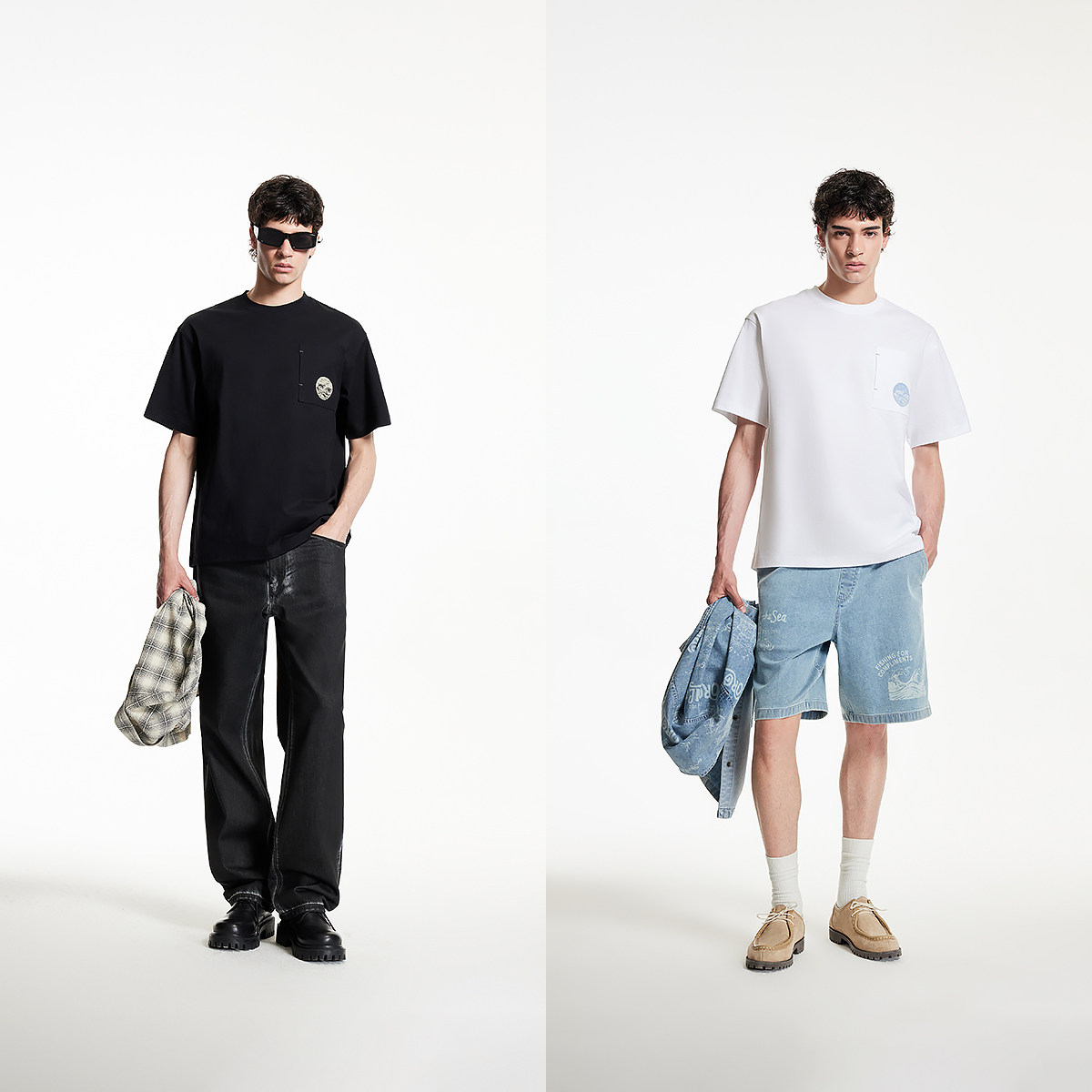 森马短袖T恤男纯棉打底衫修身长袖25夏季新款纯色内搭上衣简约白