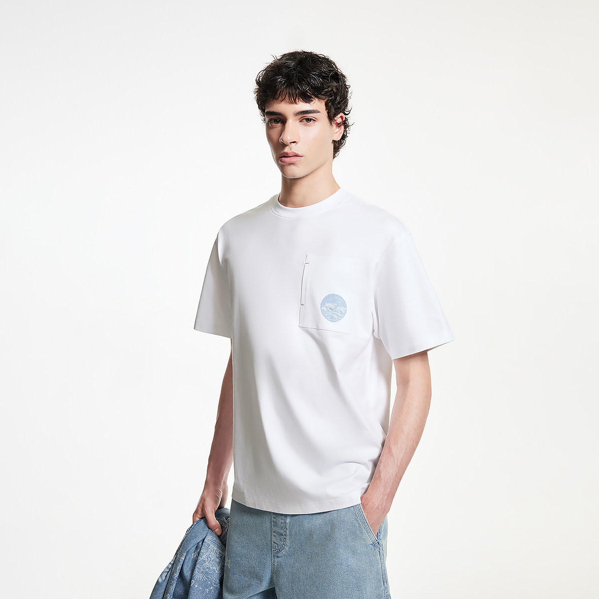 【春上新系列凉感】杰克琼斯男装新款纯色打底衫刺绣短袖男款T恤