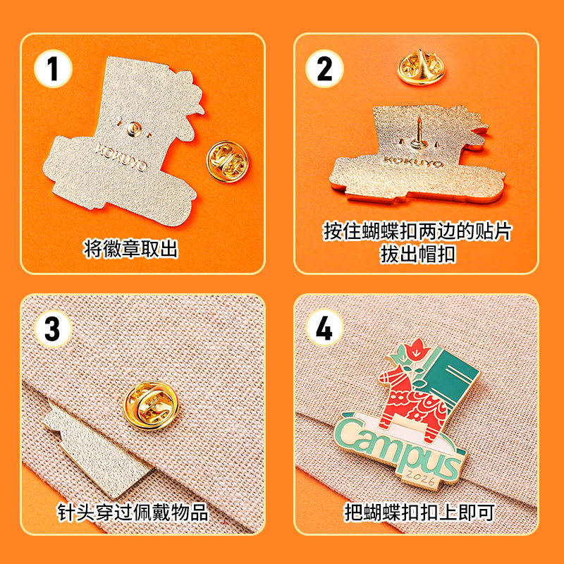 【2026马年限定】日本KOKUYO国誉Campus徽章创意金属别针可爱卡通日系胸针胸章包包配饰装饰挂件周边