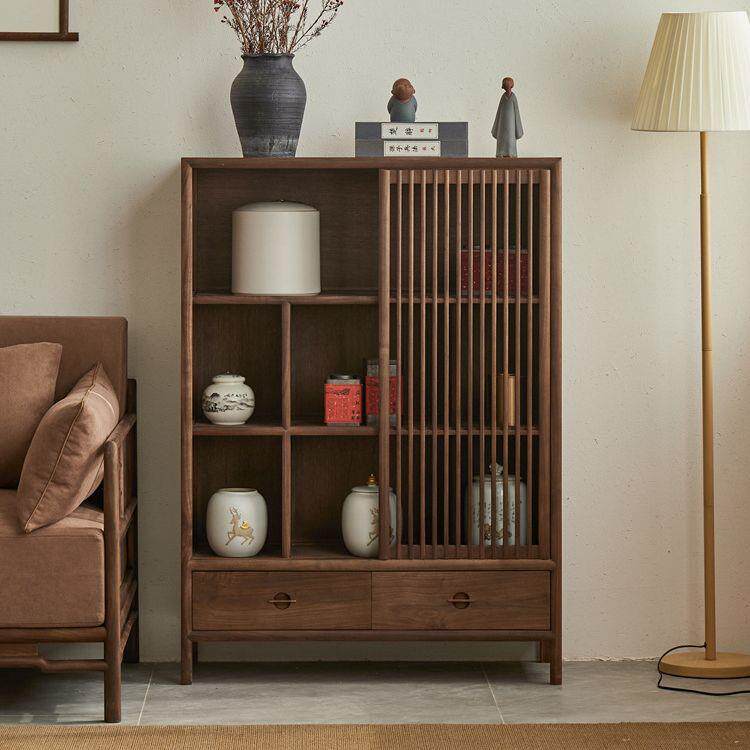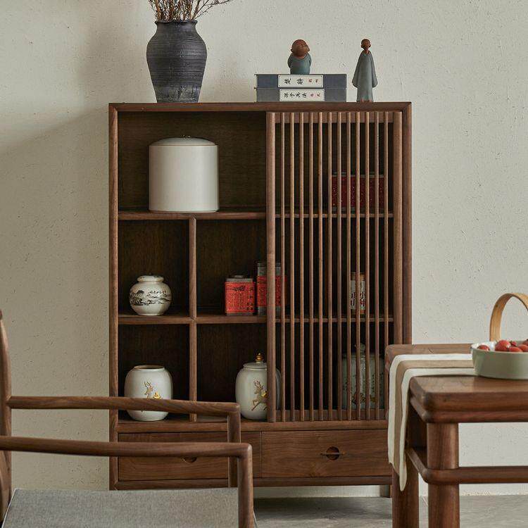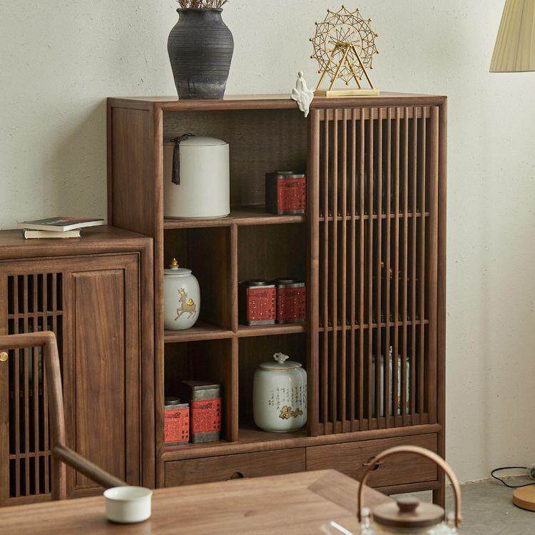 新中式实木餐边柜客厅边柜沙发侧边柜储物柜黑胡桃木茶桌柜茶边柜