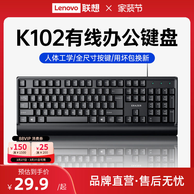 联想小新K2键盘有线轻音键盘仿红轴无线键鼠套装电脑键盘办公女生