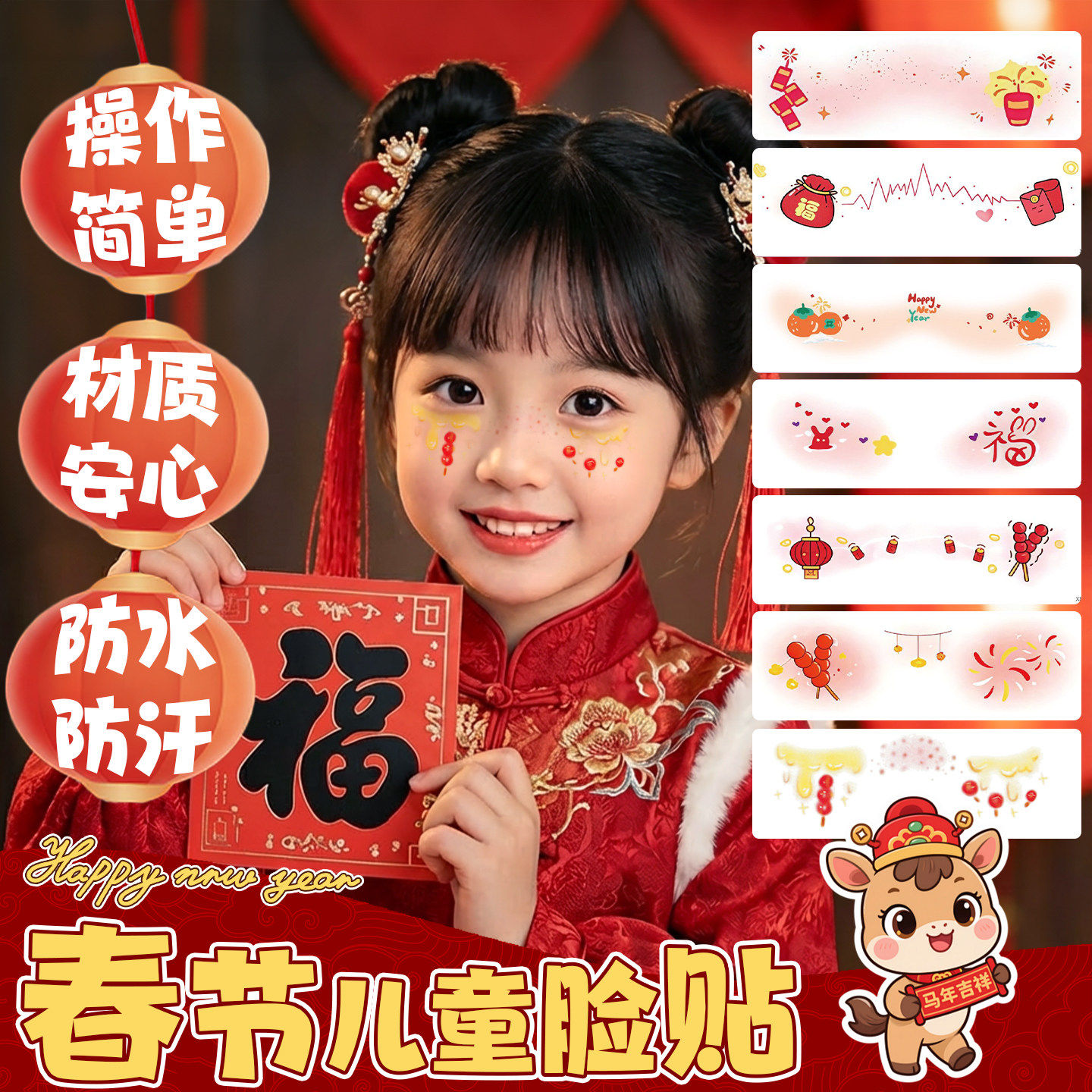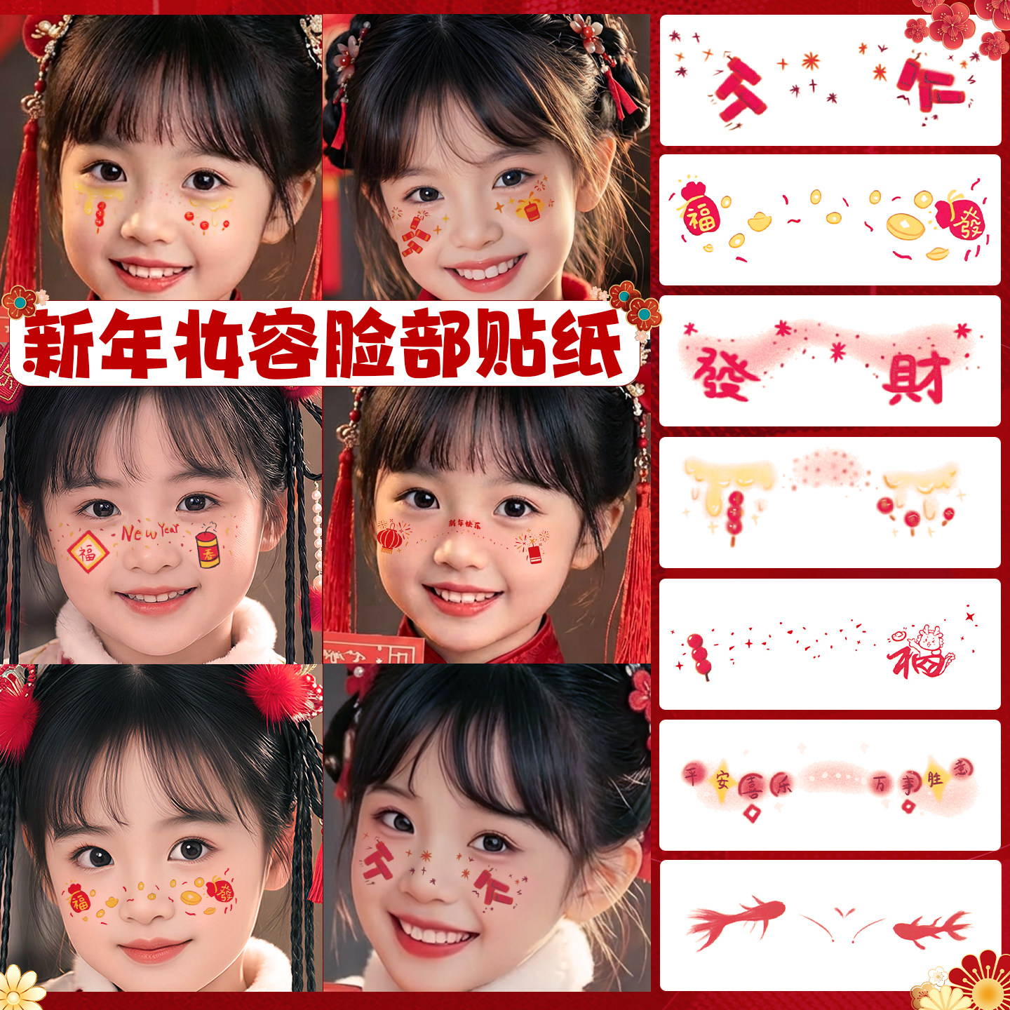 新年脸上贴纸可爱卡通创意烟花爆竹化妆贴女童成人舞台表演COS喜庆节日装扮氛围面部防水贴画拍照必选立体贴