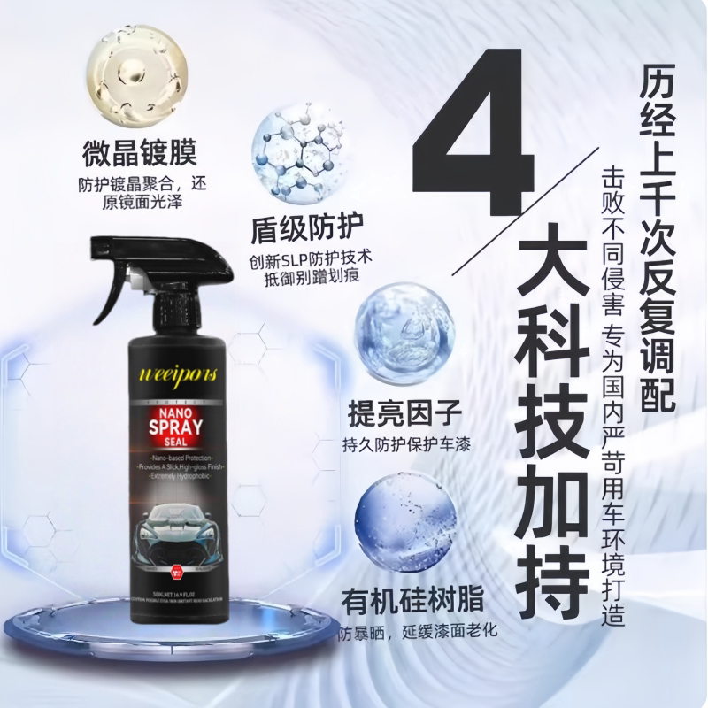 Weeipors新款汽车镀膜剂漆面专用纳米水蜡增亮上光镀晶喷雾清洗剂