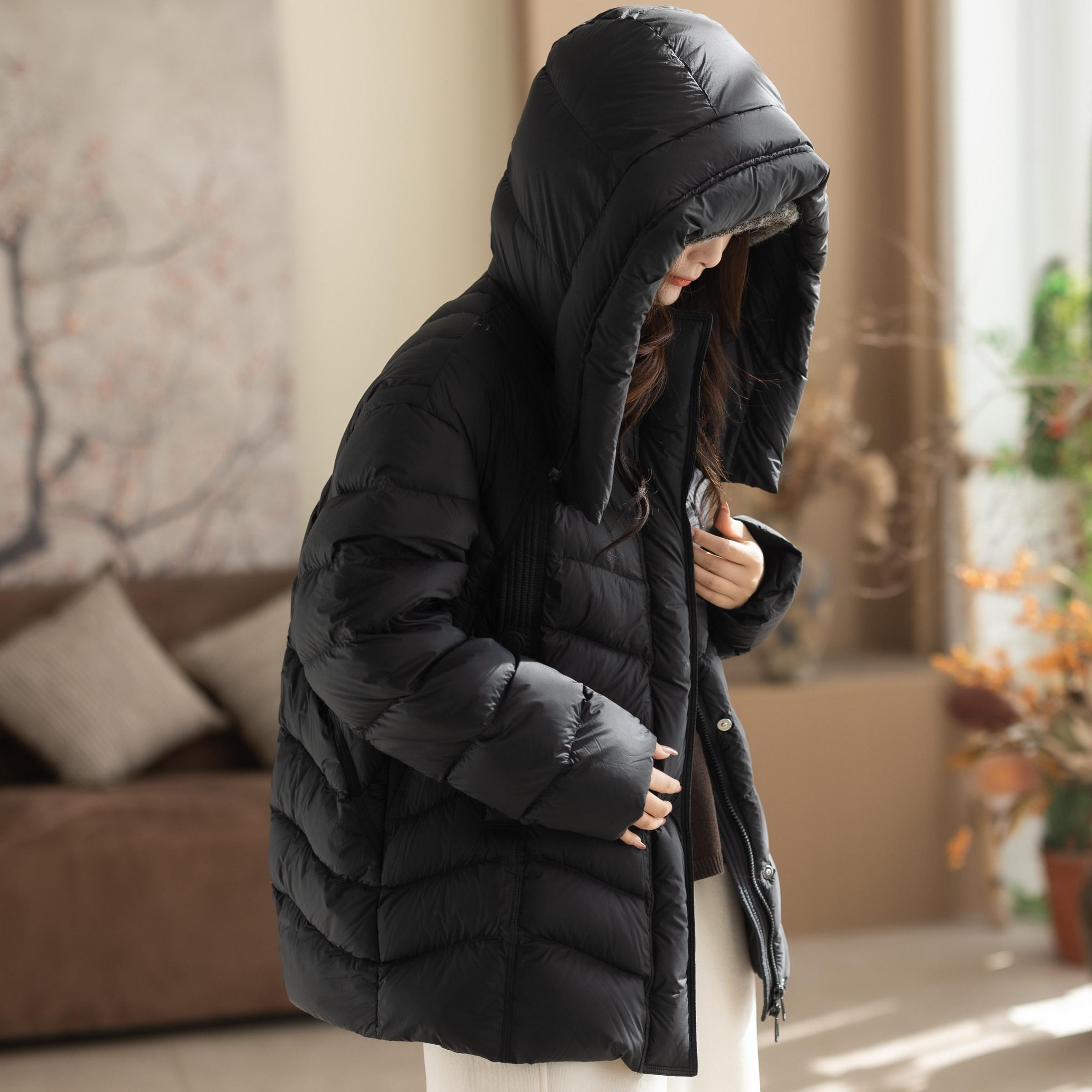 咖咪羽90白鸭绒冬装新款黑色中长款流行时尚百搭通勤女款羽绒服