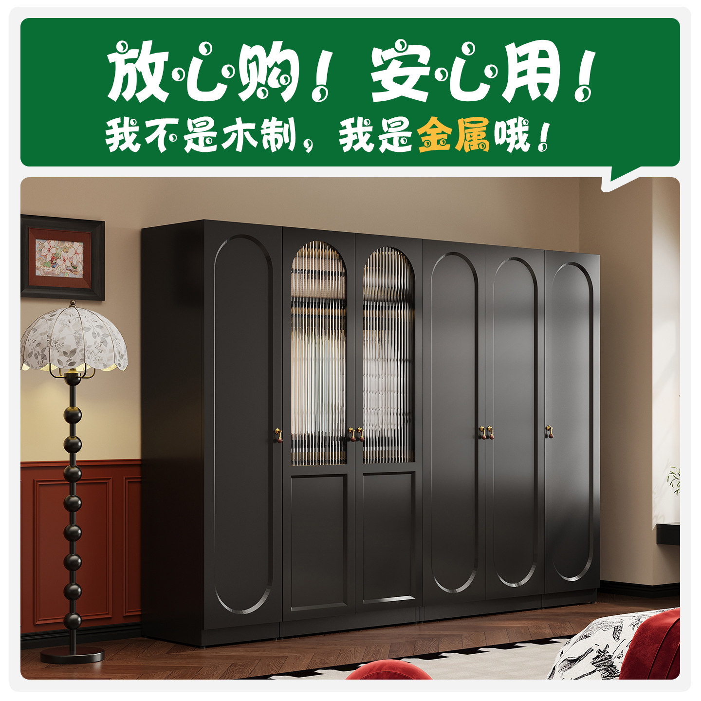 复古风钢制金属小户型衣柜静音设计卧室节省空间多层衣物收纳柜子