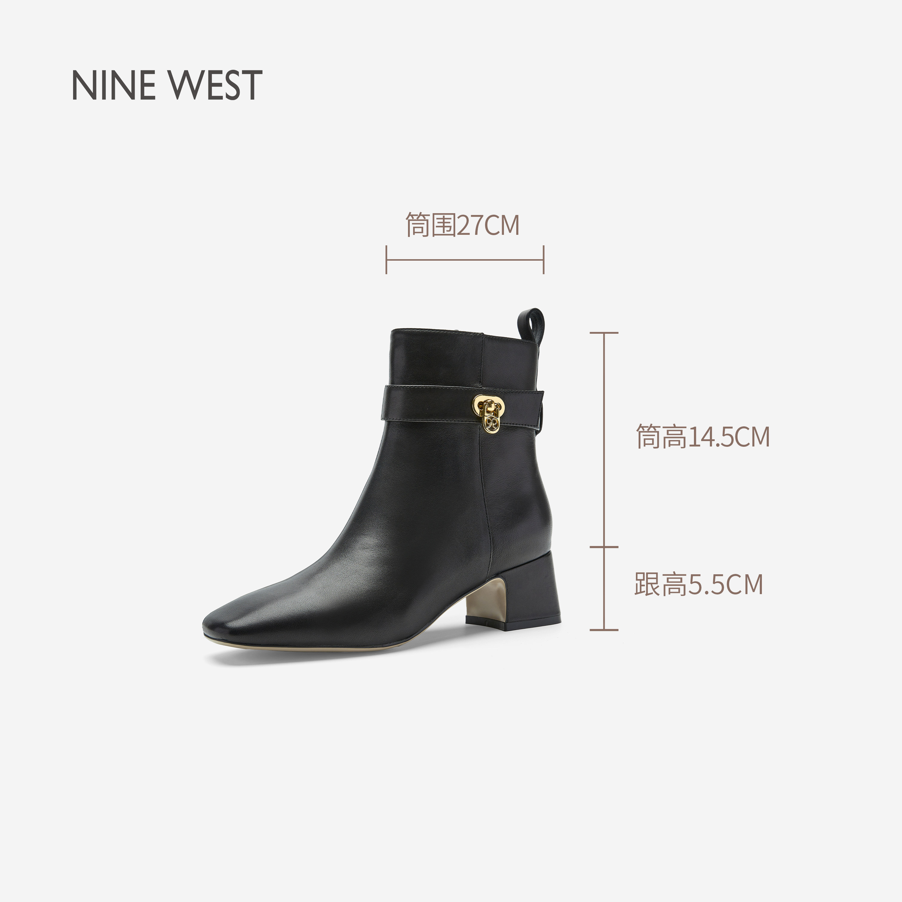 Nine West/玖熙粗跟时装靴女秋冬季新款高跟短靴时尚马丁靴