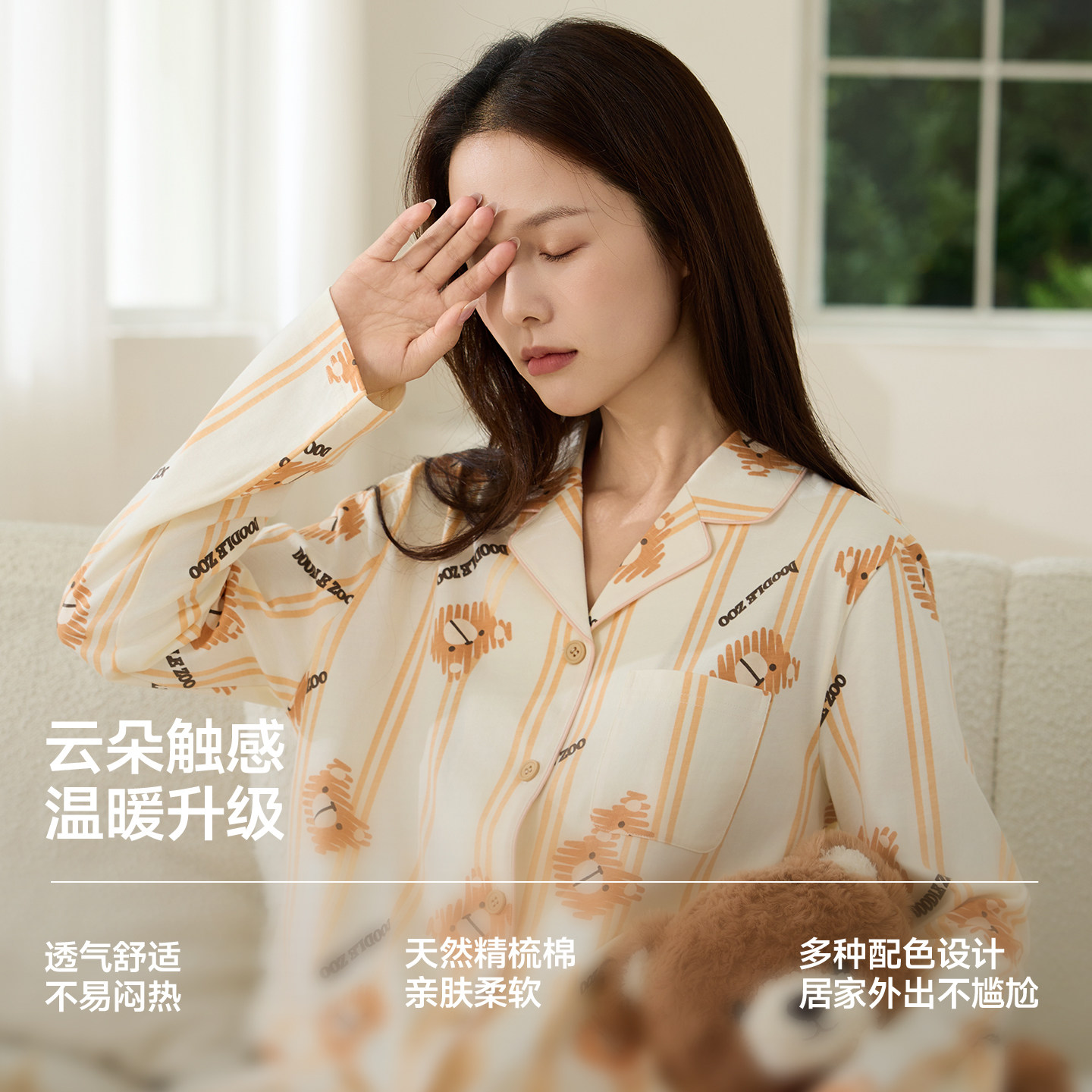 亚朵星球深睡睡衣睡裤家居服套装女款长袖带胸垫2025新款秋冬衣裤