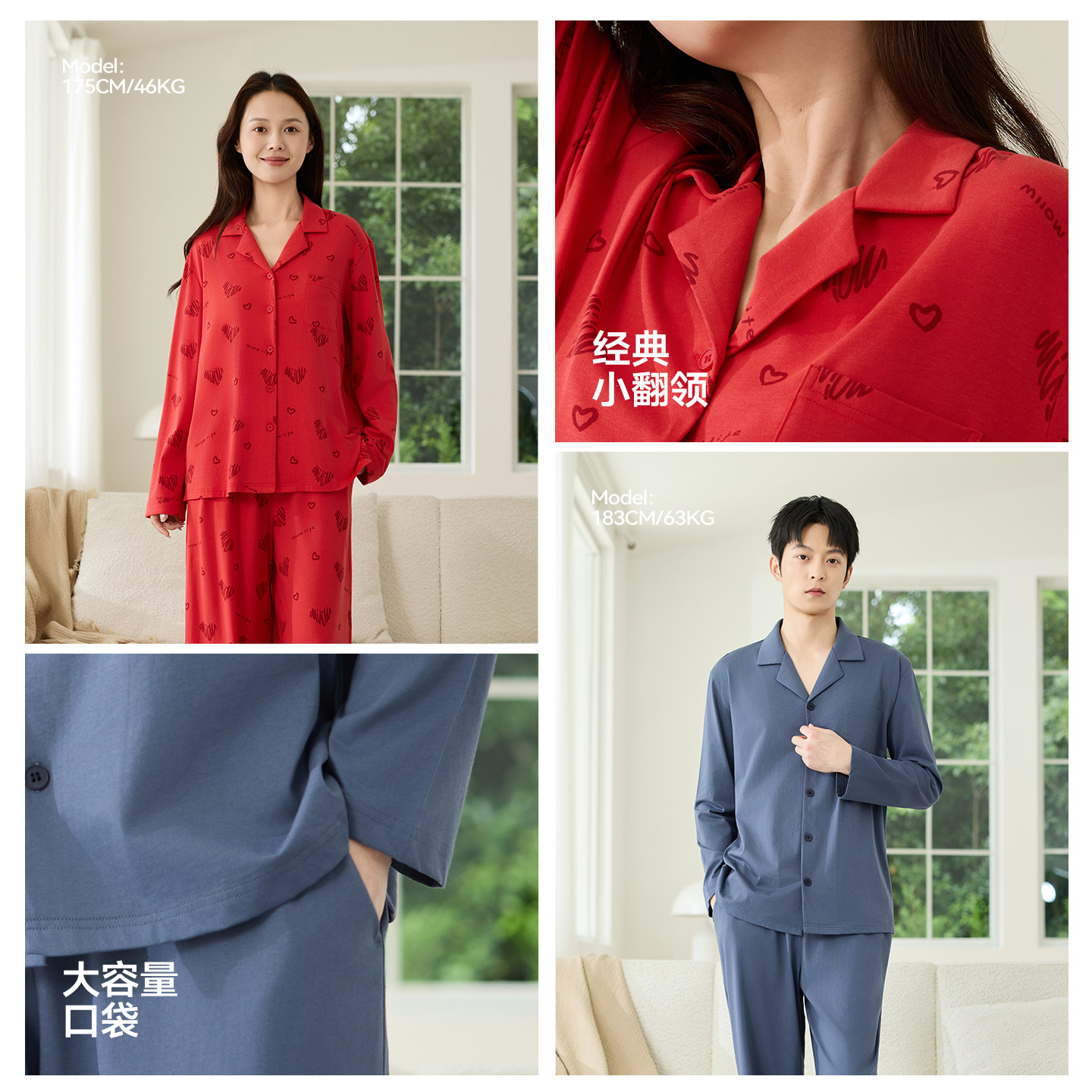 猫人睡衣男女秋季2025新款纯棉长袖长裤家居服套装柔软透气可外穿