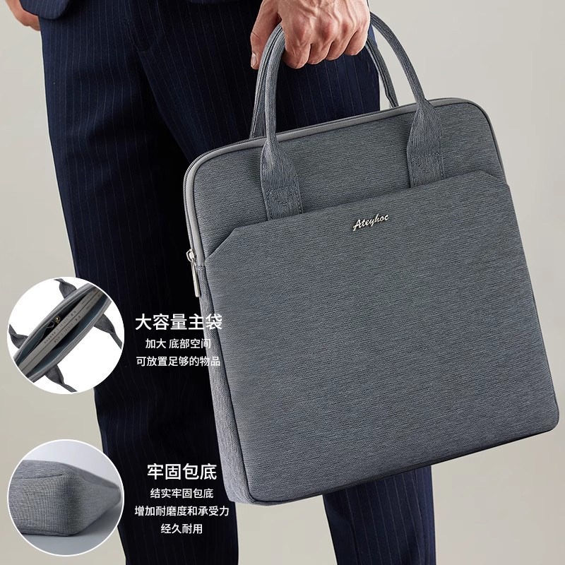 杰利公文包商务男士款手提多功能大容量竖款文件包手拿携带资料会议包帆布文件袋子公文袋办公拉链式定制