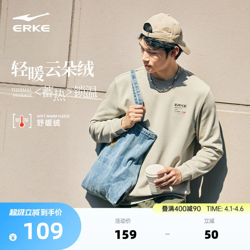 鸿星尔克卫衣男冬季新款男士青少年运动加绒长袖圆领上衣休闲男装