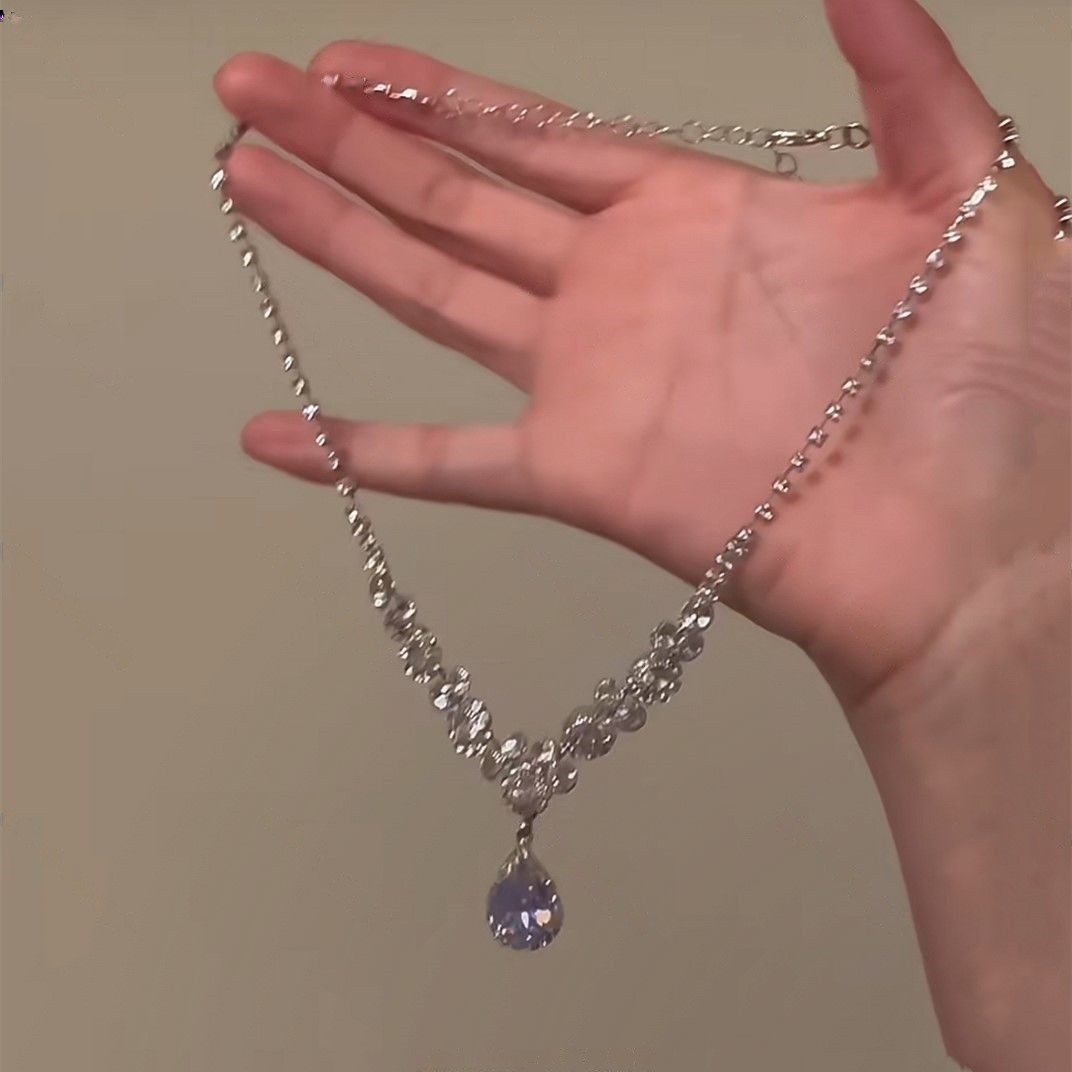 银色水滴吊坠项链女秋冬长款轻奢钛钢不掉色装饰毛衣链高级感配饰