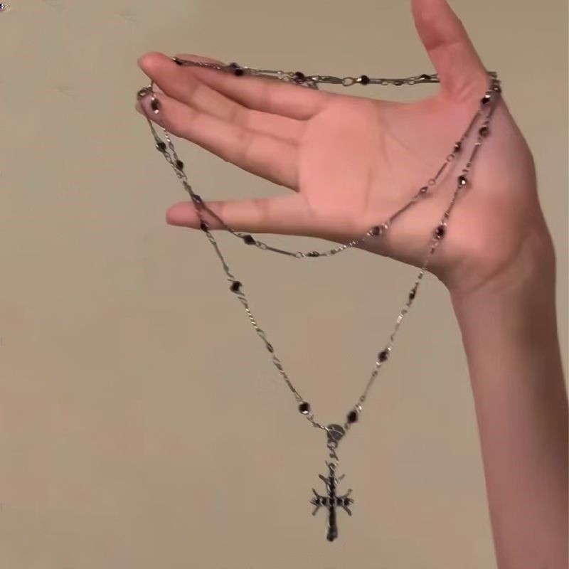 美拉德波西米亚叠戴毛衣项链女棕色复古穿搭choker锁骨链高级配饰