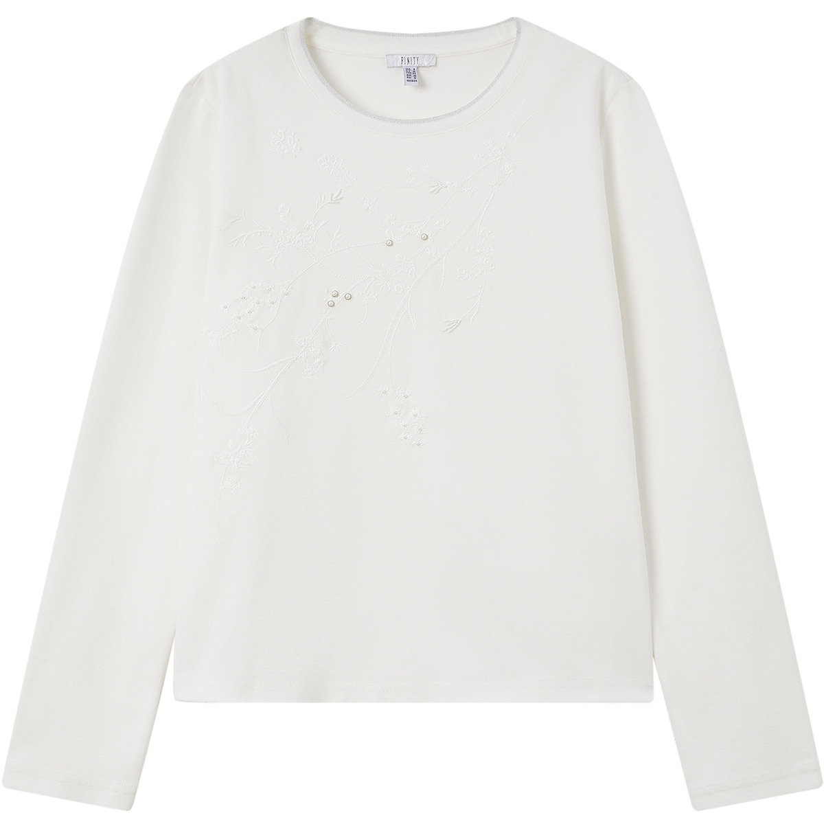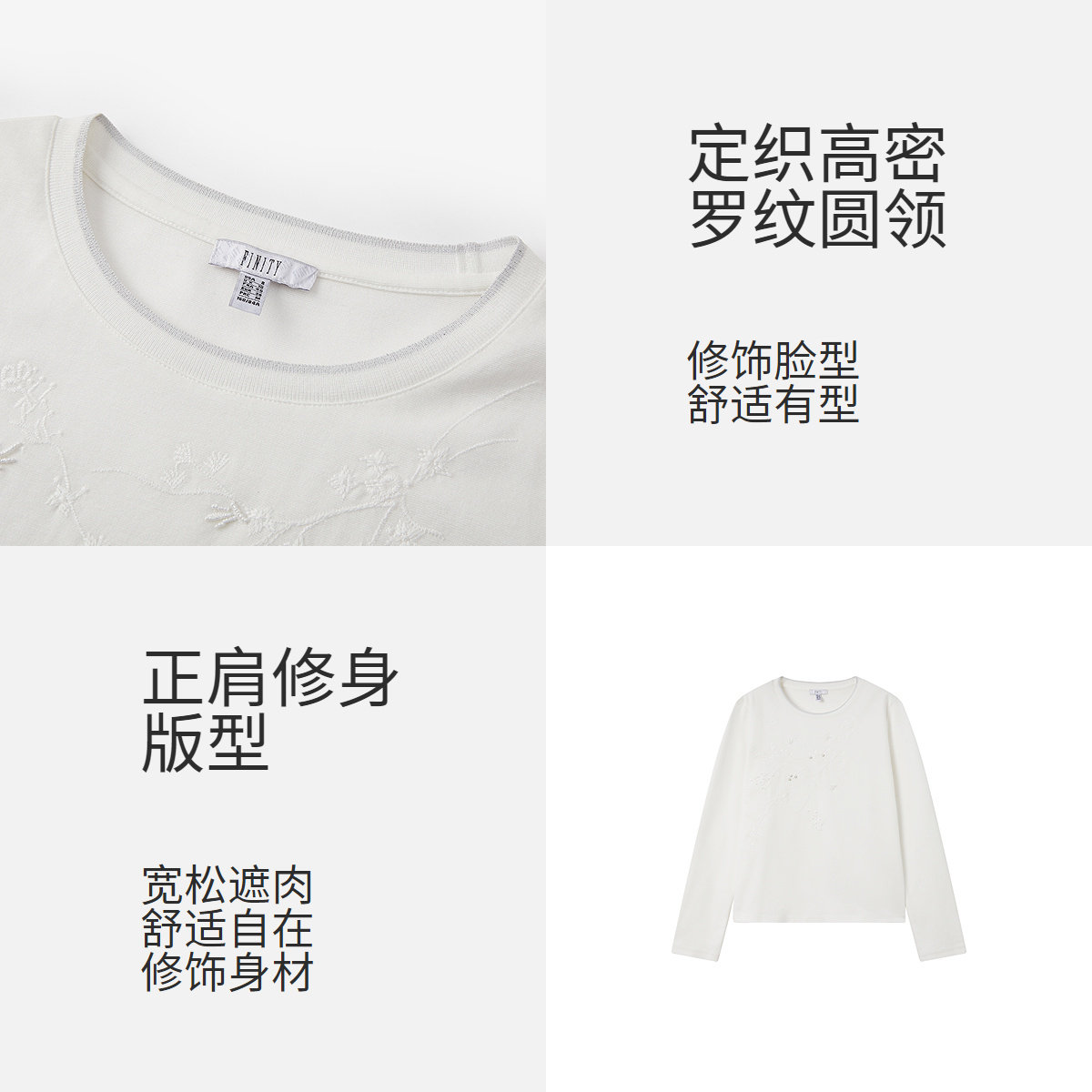 三福长袖上衣女2025新款秋冬季圆领内搭打底衫修身白色t恤女装