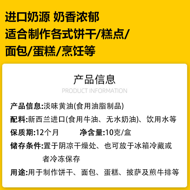 牛佰仕动物黄油烘焙家用小包装煎牛排专用商用无盐抹面包蛋糕食材