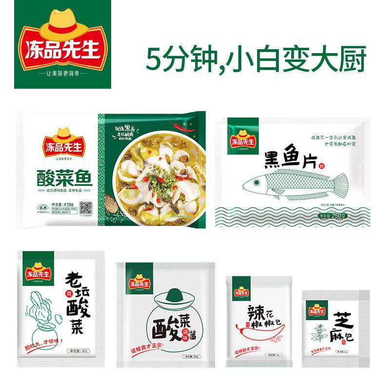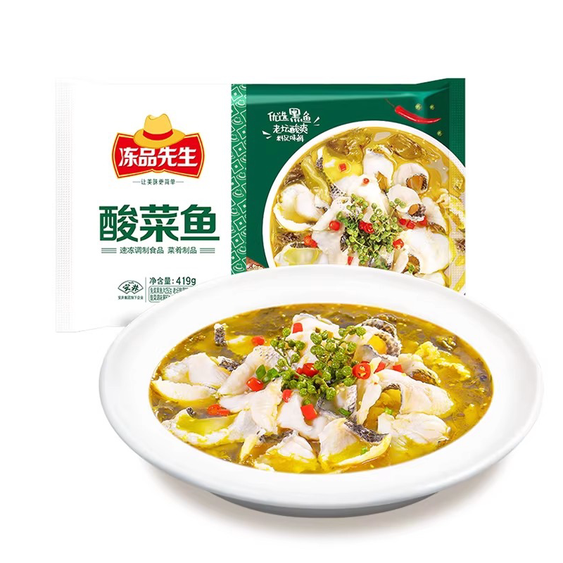 安井冻品先生酸菜鱼419g快手菜预制菜方便速食水煮鱼片黑鱼片料理