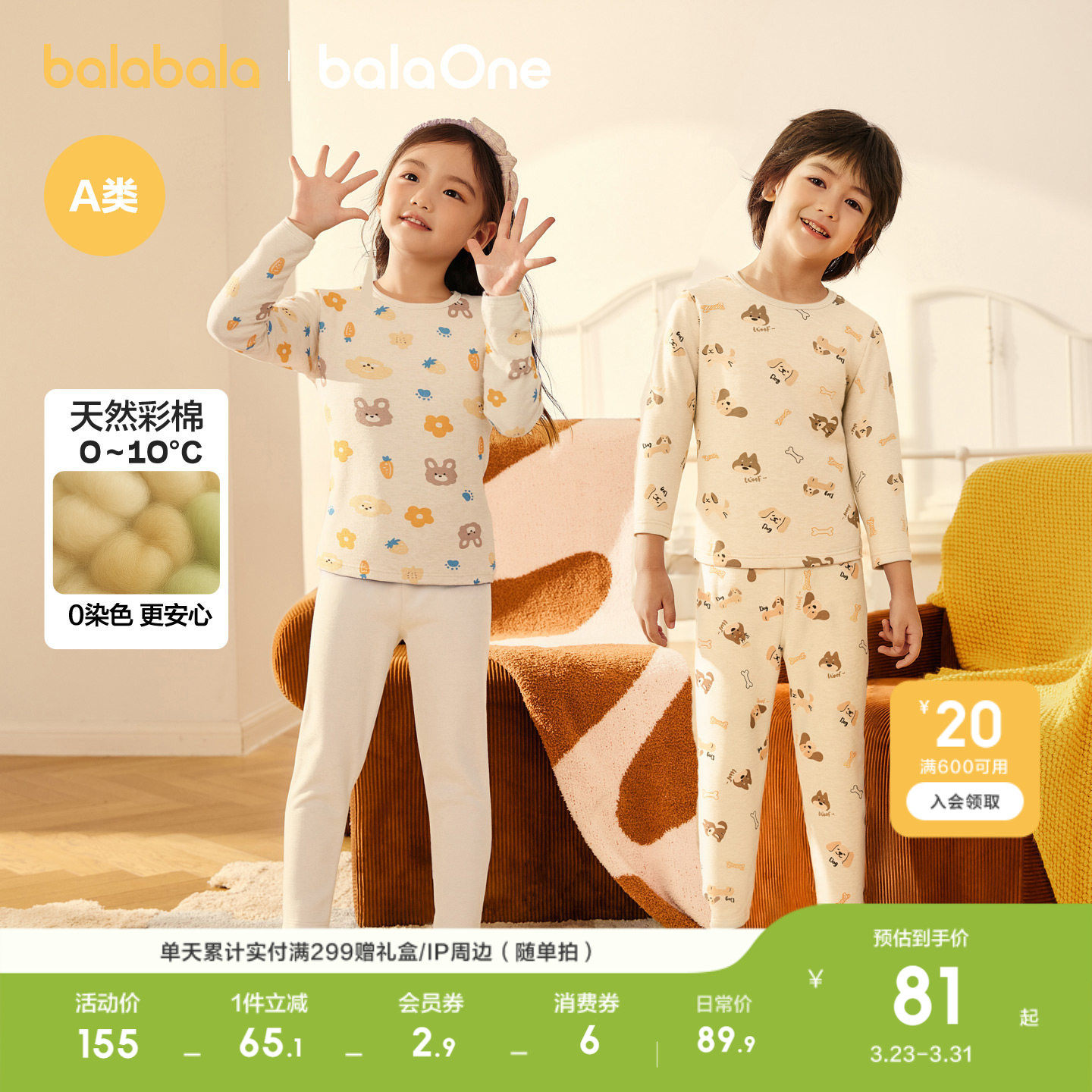 【植物芯】迷你巴拉儿童保暖内衣套装男女童家居睡衣宝宝秋衣秋裤
