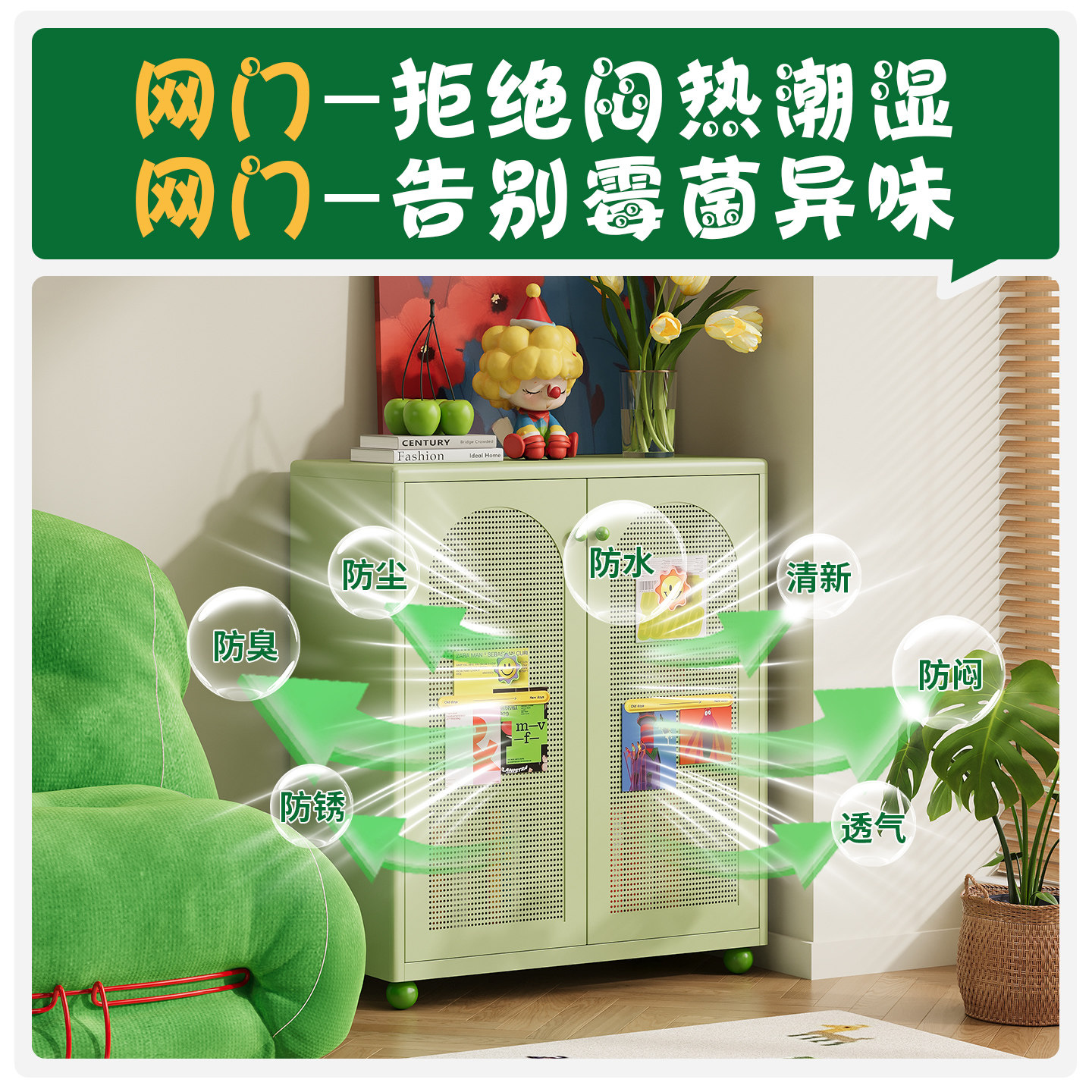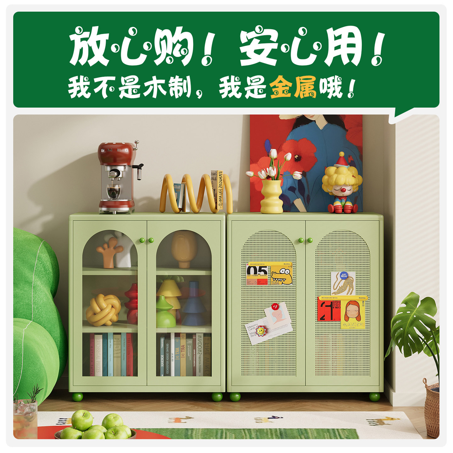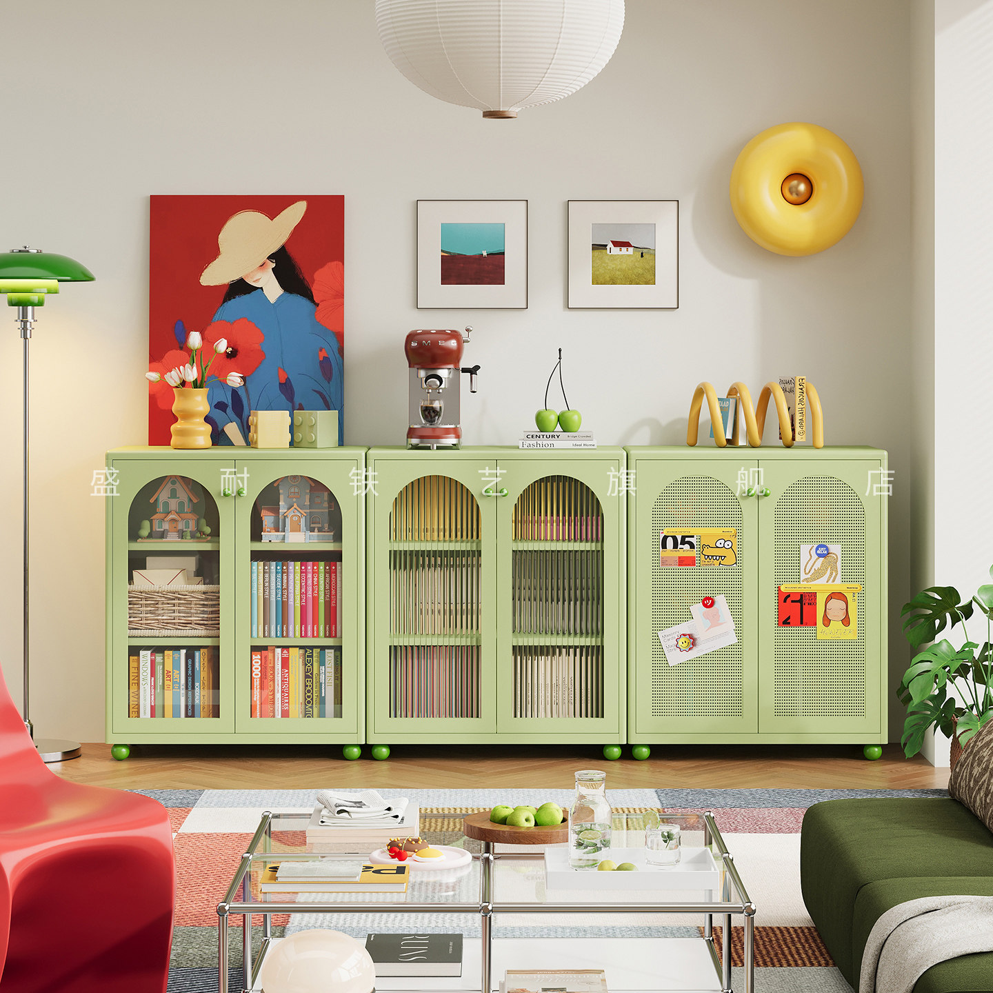2026年新型铁艺书架一体靠墙卧室房间防尘带门书柜矮柜储物置物柜
