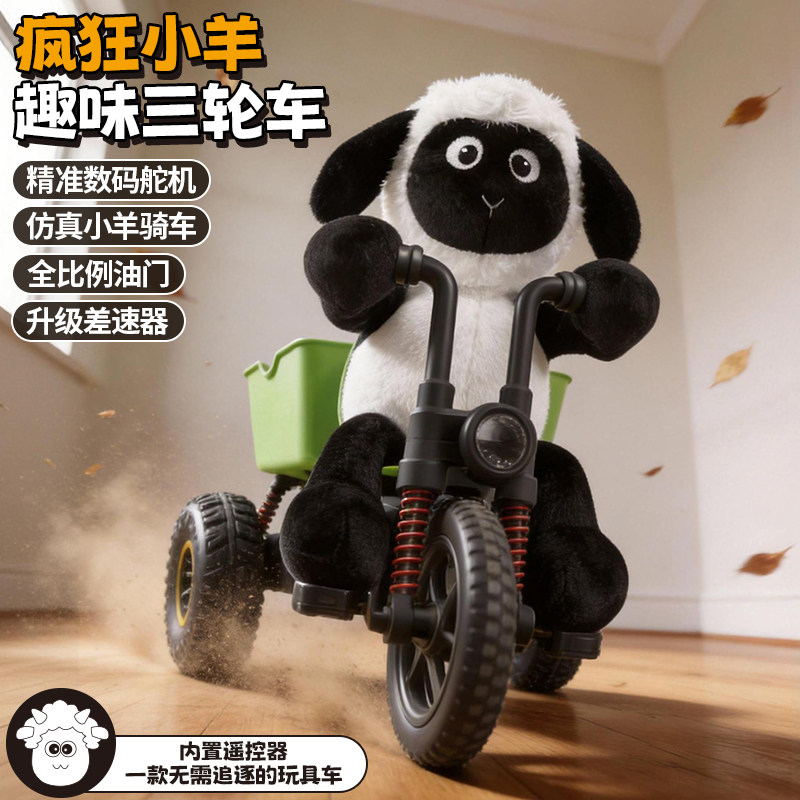 抖音爆款小羊遥控三轮脚踏车肖恩rc越野攀爬赛车男孩玩具远程骑车