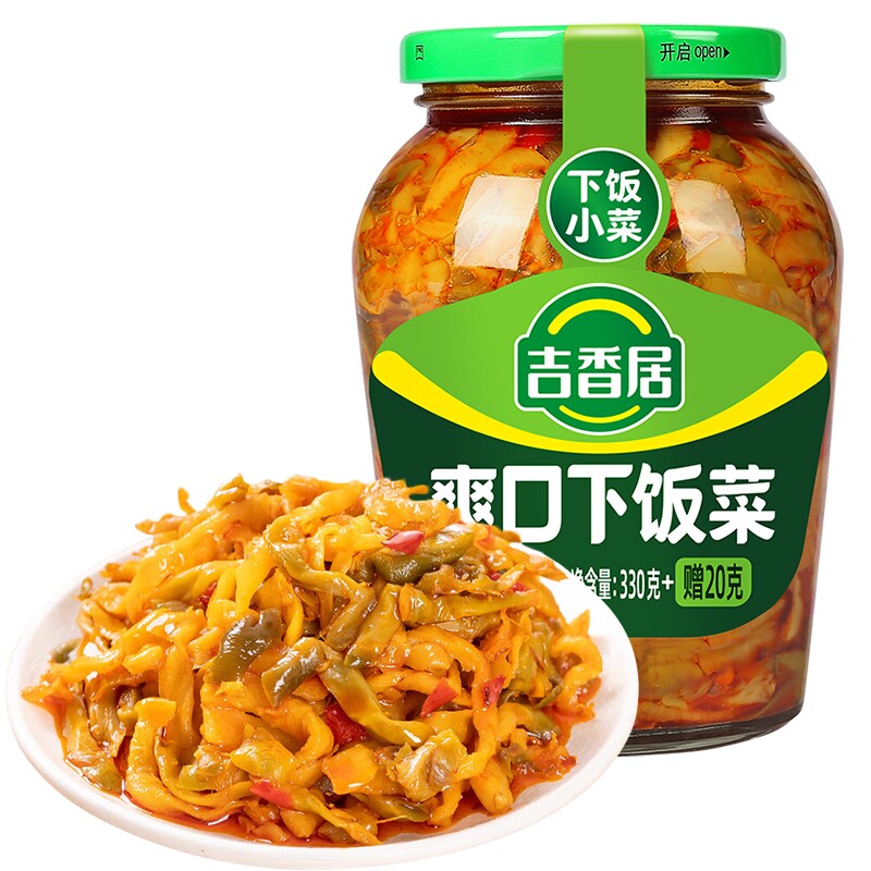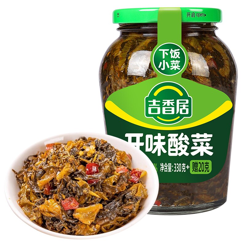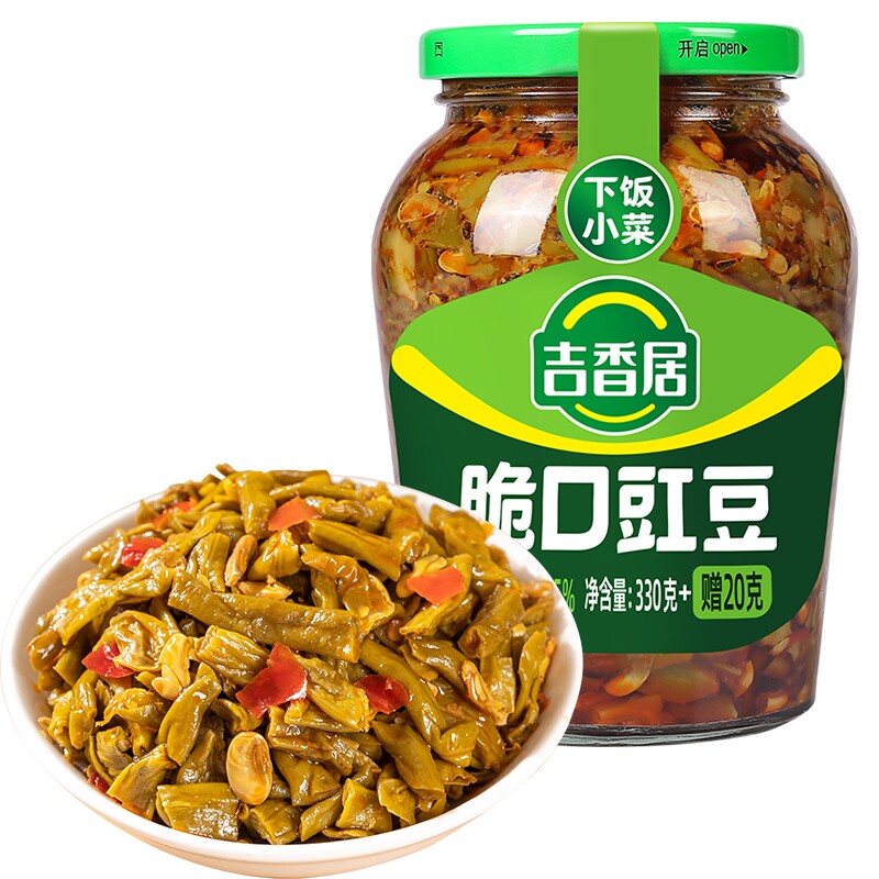 吉香居下饭菜350g瓶装榨菜芯酸菜酸豆角咸菜四川泡菜豇豆麻辣脆口