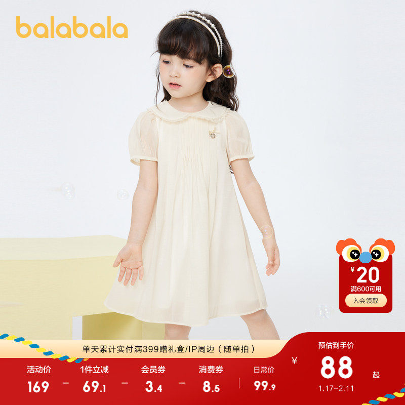 巴拉巴拉童装儿童女童裙子新款夏装娃娃领压褶A字小童宝宝连衣裙