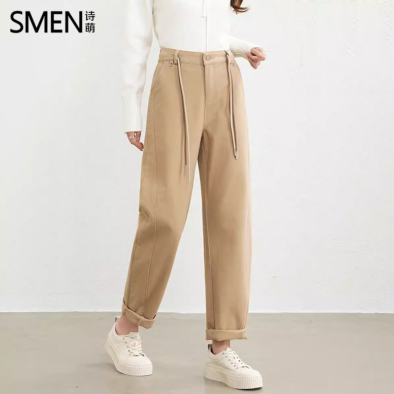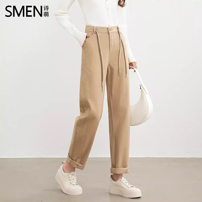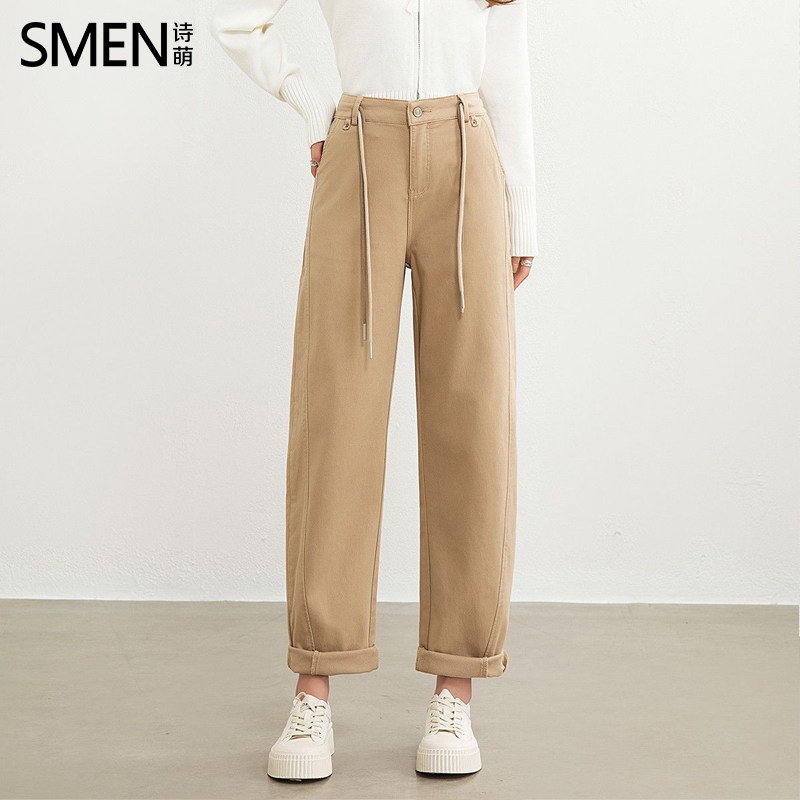 SMEN诗萌高腰弯刀裤女2026宽松显瘦阔腿裤长裤遮肉气质通勤牛仔裤
